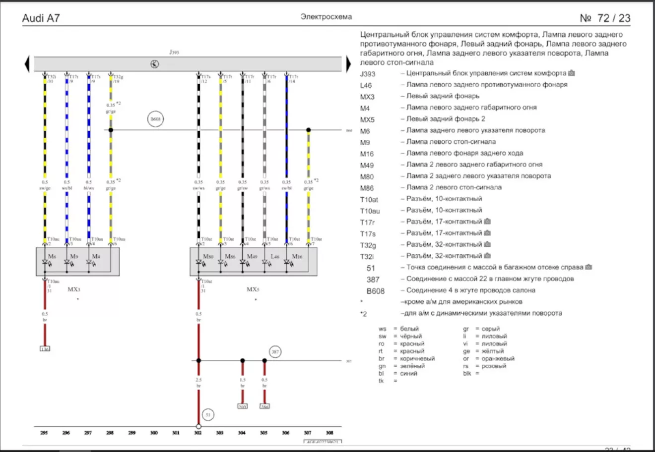 Если в двух словах, то добавляется по два провода на каждый фонарь. Один из них общий для запуска динамических поворотов. В процессе установки, вы увидите, что два контакта уже заняты — это задние сайдмаркеры, просто отключаем и забываем про них