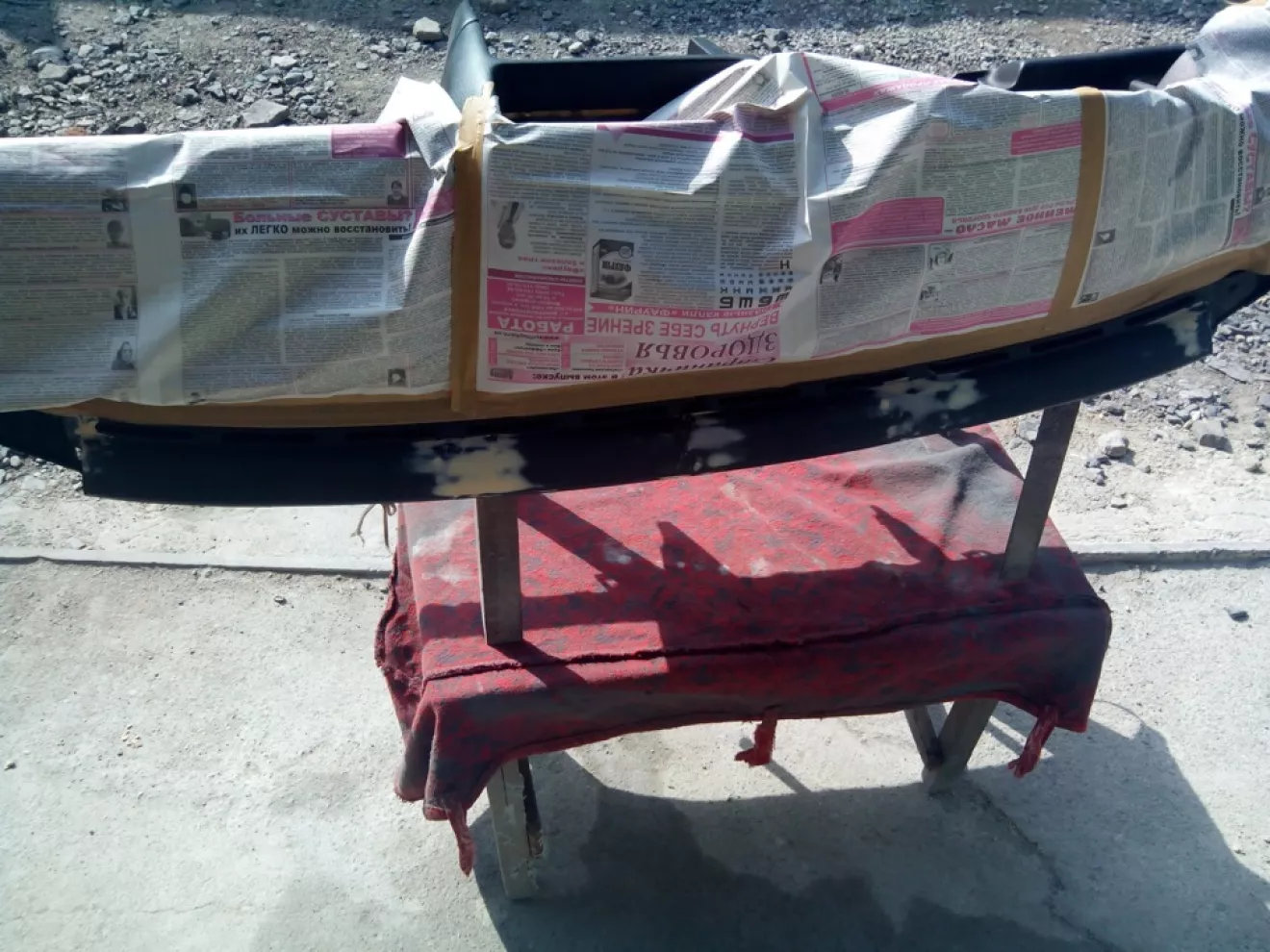 ну и при помощи ещё одного очень хорошего соседа была пошпаклёвана и погрунтована и покрашена структурной краской для пластика
