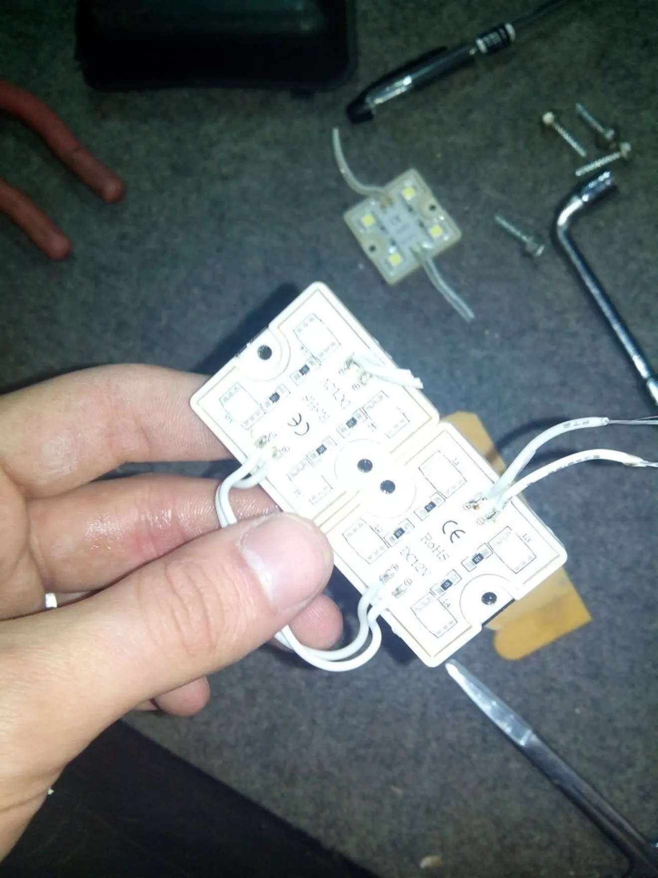 Были куплены 4 светодиодных модуля с смд5050 4 светодиода на модуль, ну и в ход пошли фантазия