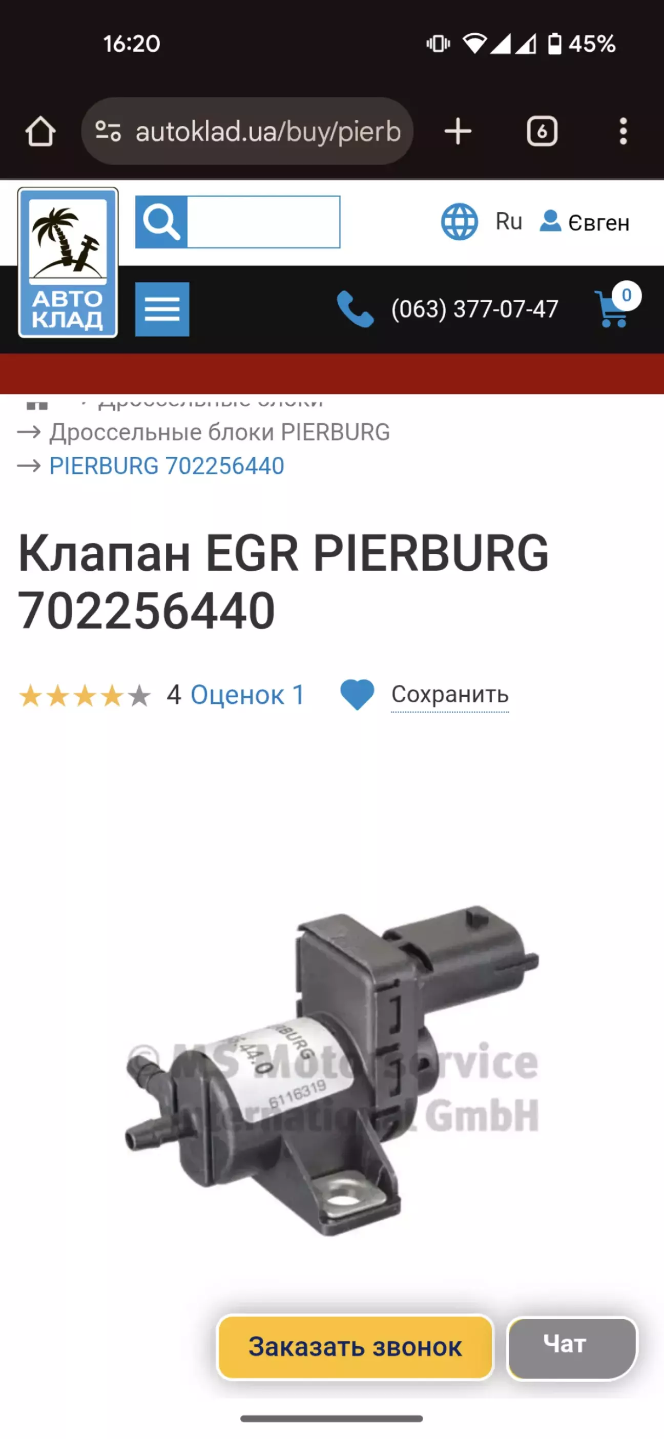 Я думаю у багатьох з'являлась проблема P0299 недодув турбіни. У мене вона з'являлась якщо я давав авто нагрузки або "люлєй"вона падала в аварію вимикалась турбіна машина ставала овочем на цей випадок у мене завжди стояла ELM я на ходу видаляв помилку і їхав далі якщо кататись в нормальному режимі ця помилка ніколи не турбувала, намагався я з нею боротися чисткою EGR дроселя і патрубків в моїх постах є про це, але не допомогло тоді я полазив по форумам зібрав інфу деяким допомогла заміна цього датчика Датчик тиску ОГ NRF 708042 мені це не допомогло тоді замінив ще один клапан Клапан EGR PIERBURG 702256440 нажаль теж не допомогло заливав присадки для прочистити
