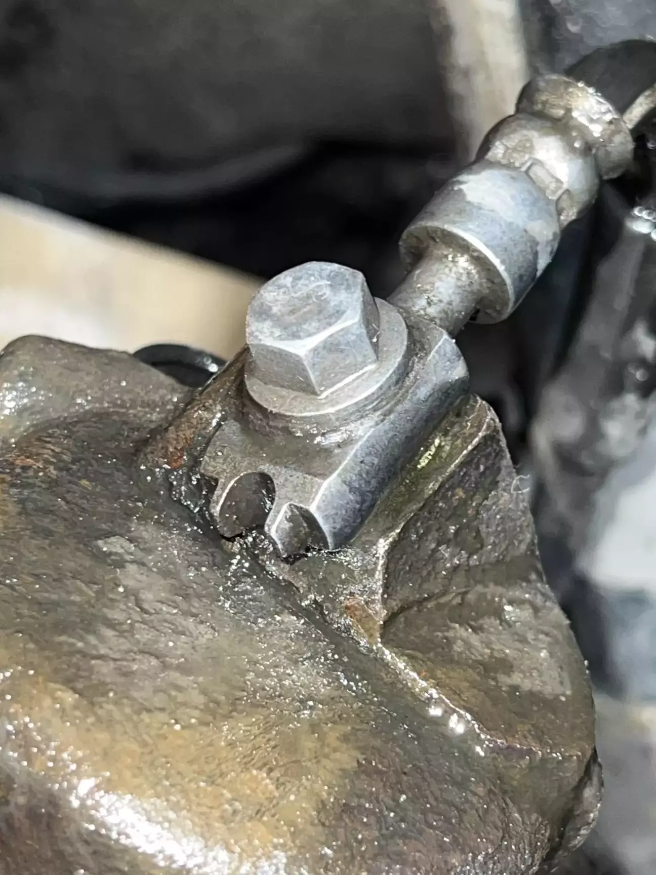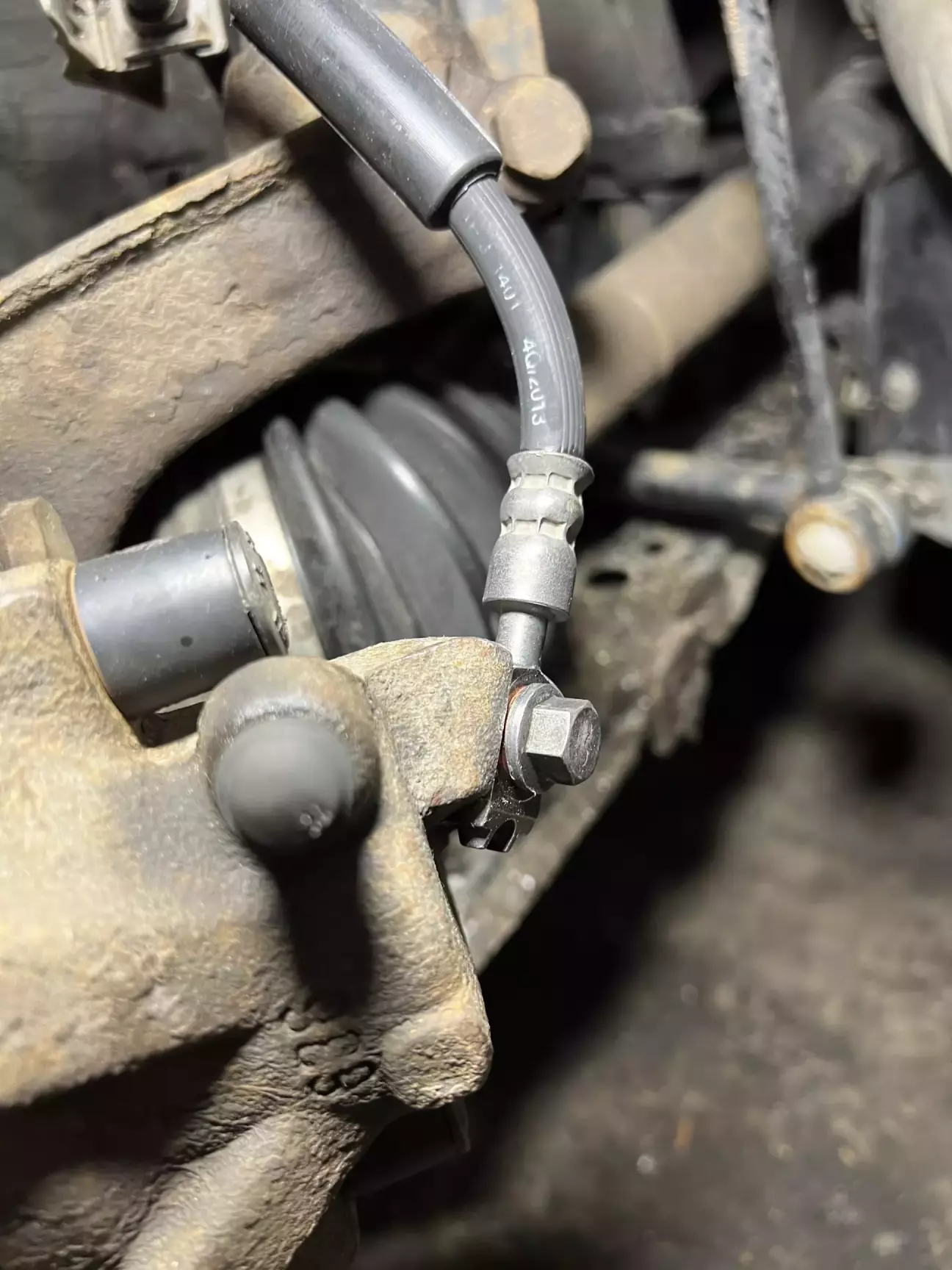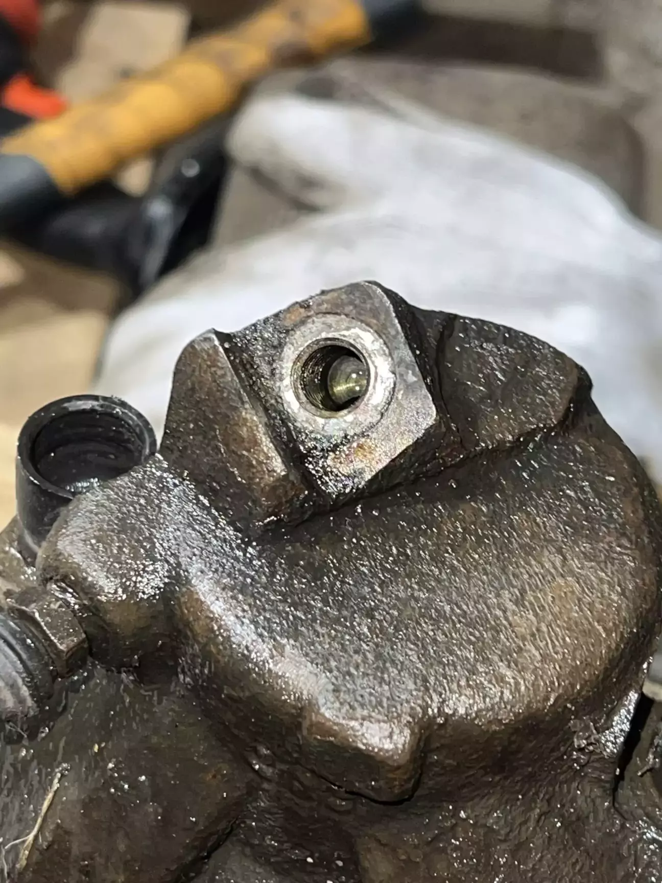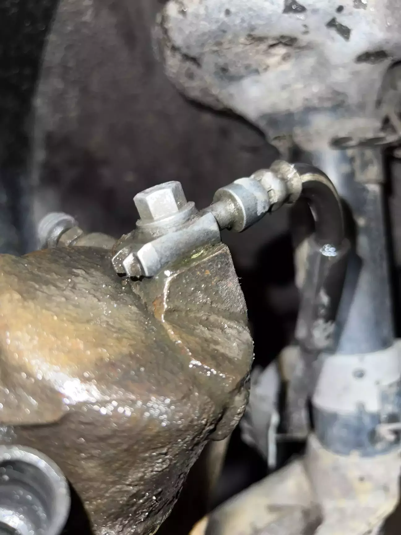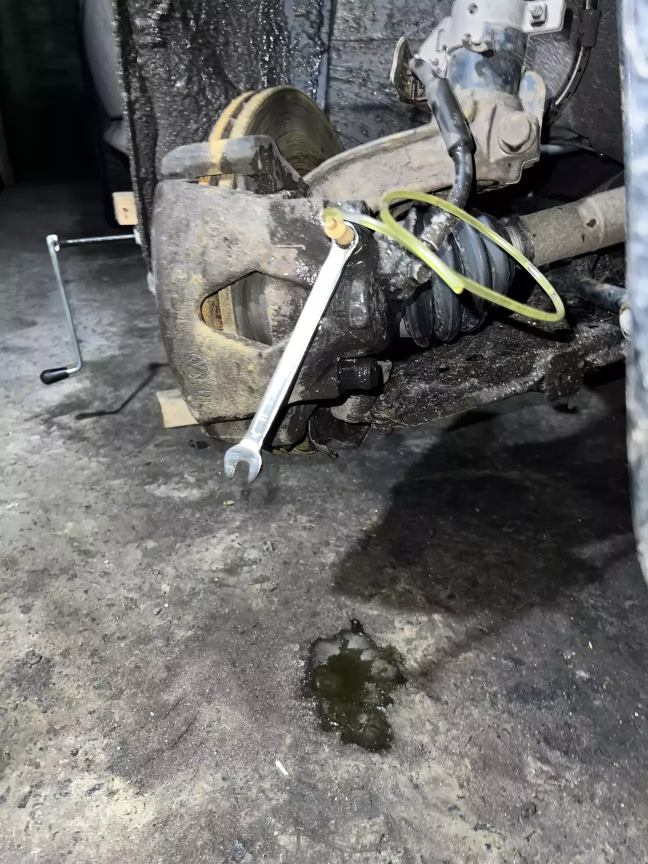 Зняв колесо, почав оглядати і відразу не зрозумів де витікає, пильник на поршні був повністю сухий. Прийшлось трохи долити рідини а дружина качала педаль. І при прокачці струя рідини бризнула з під шайби на шлангу 🤷♂️