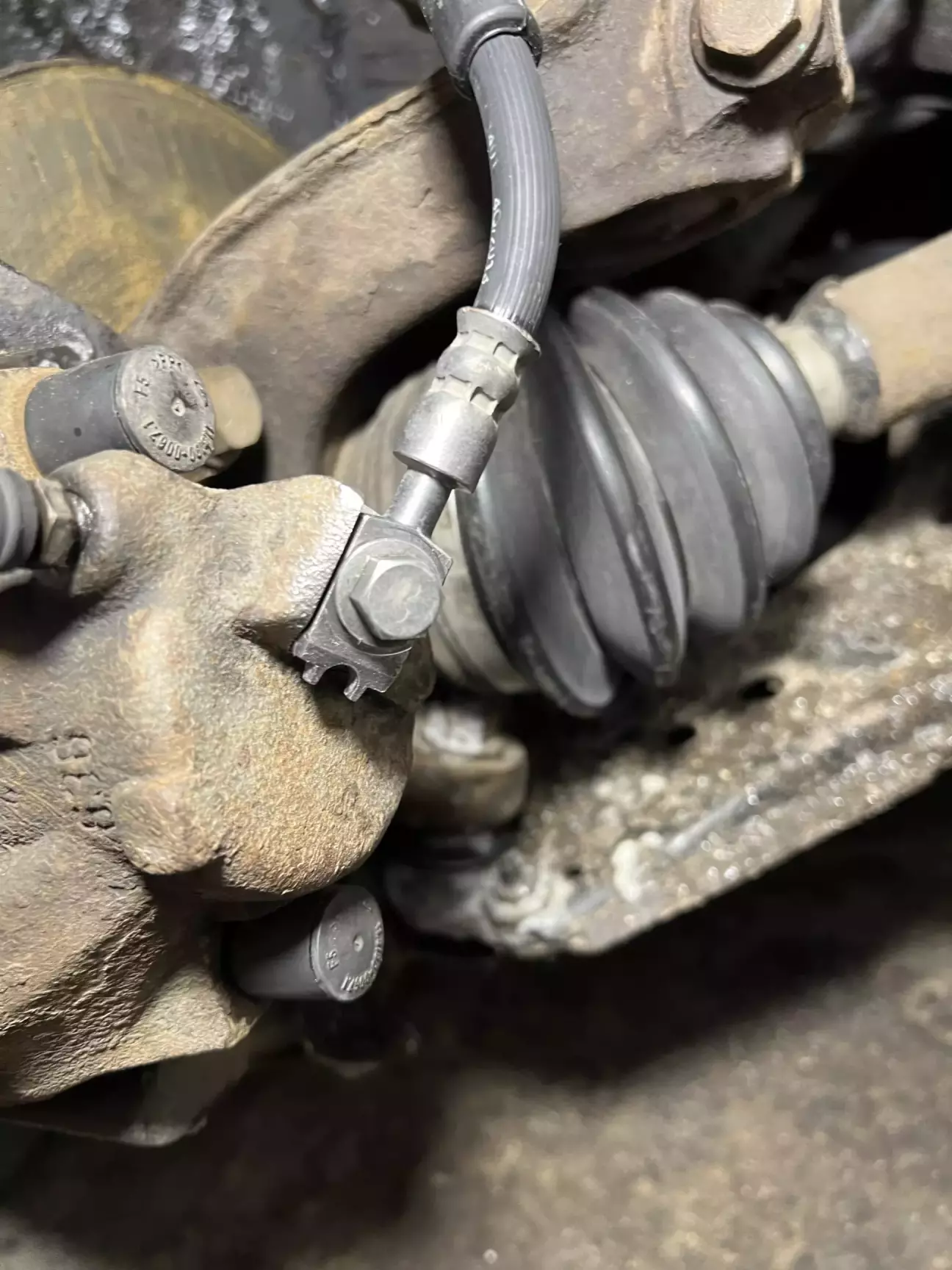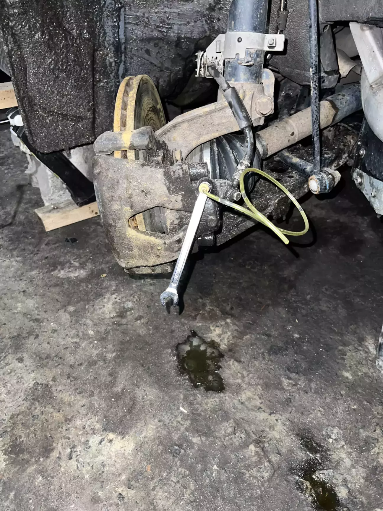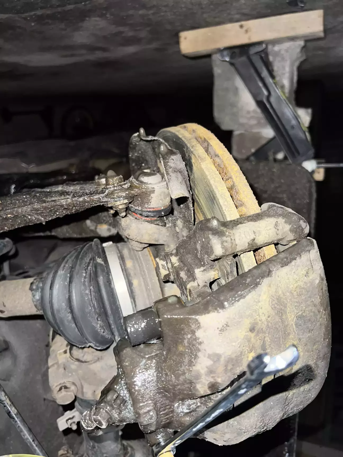 Ледве діставшись додому, без гальм, відразу почав оглядати колеса, надворі -12 нічого не зрозуміло навколо все в снігу і льоду і ніфіга не видно, але по свіжому зміг розгледіти мокрий передній правий супорт 😟
