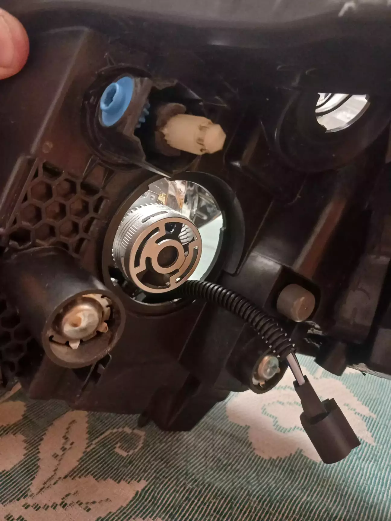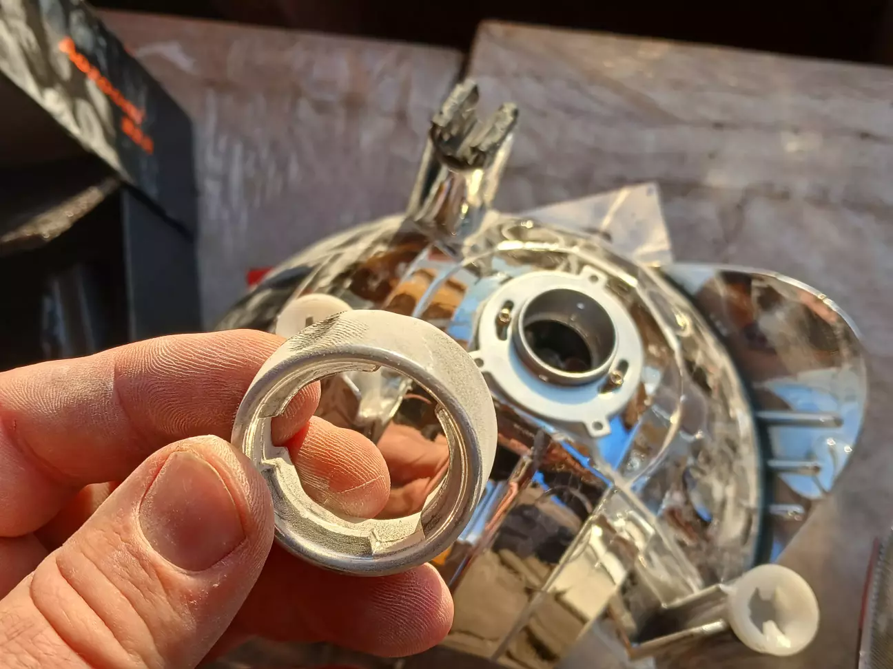 На наступний день примірка лінз. Ободок під лампу Н13 дуже товстий, міні лінза не стає. Ну що робити, ріжемо ободок: