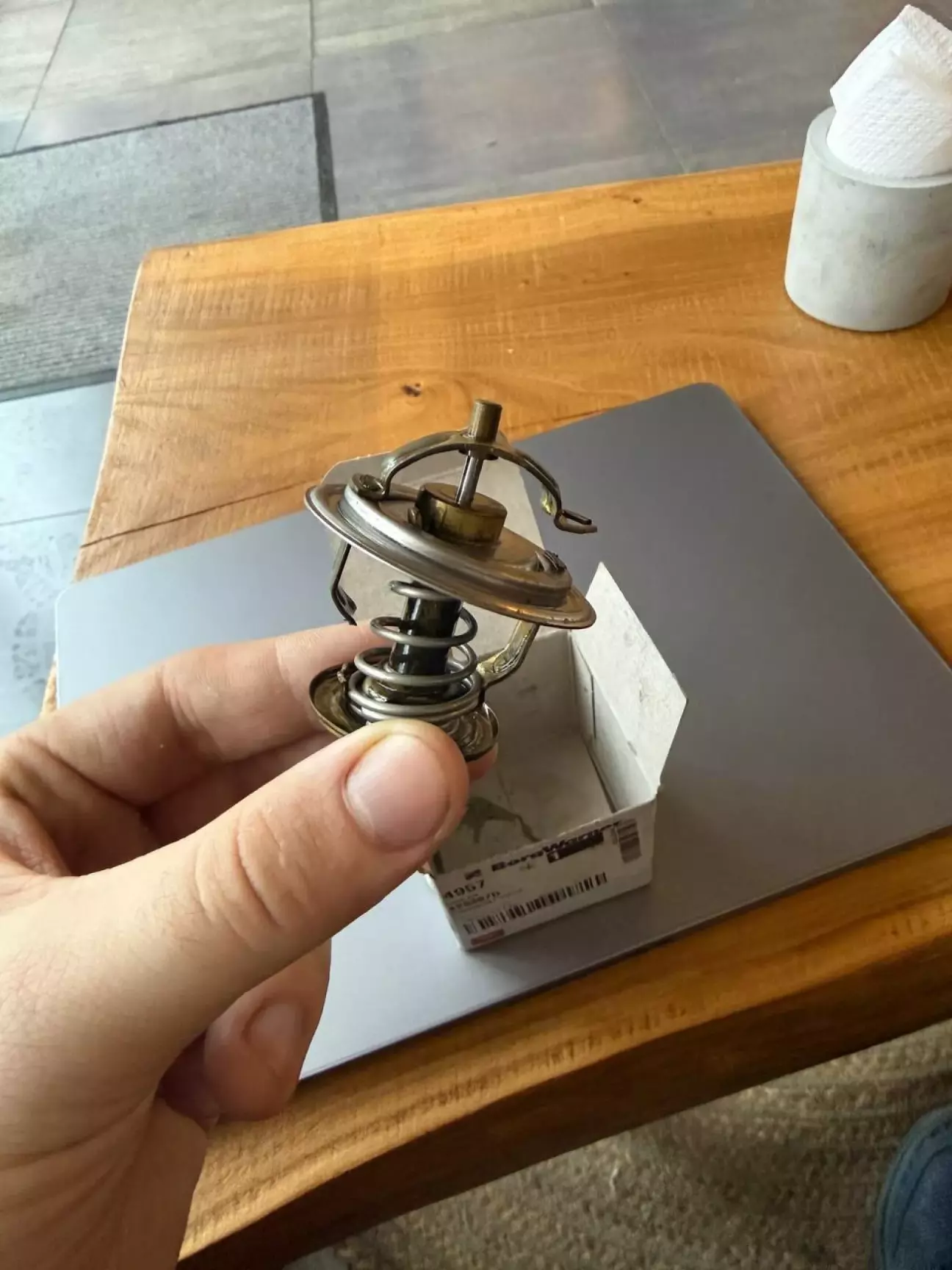 Одразу пошукав термостат в хісторі, знайшов # (є в журналі), але як усі ресурси повідомили, що номер виробник оновив, то й замовив WAHLER, 425387D (мало того що відкривається раніше, ще й резинка не підійшла, встановили зі старого.)