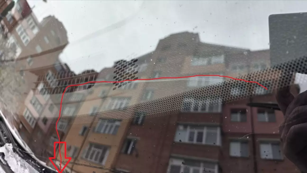 Як раз там унизу вхід ниток обігріву лобового скла, чи пов'язане це із моїм випадком? - невідомо. А чи може бути пов'язано в принципі? - 100% так, бо є випадки виникання тріщин в холодну пору року саме в цьому місці😔 і звернення по гарантії, але гарантія у мене вже тю-тю, тож КАСКО в допомогу мені.