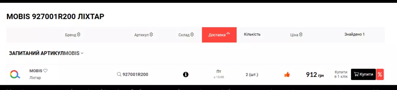 Поки йшов той перший тиждень, звісно були пошуки нового варіанту. За 3к було якось "обідно", тут натрапив на артикул Hyundai/Kia 92700 1R200 від хетча Accent (RB). Він на галогенках (пофіг), і візуально ну 1-в-1 по склу. По ціні вже краще)