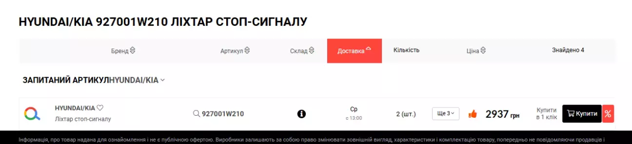 Знайшов артикул цього ліхтаря Hyundai/Kia 92700 1W210 та ціну.