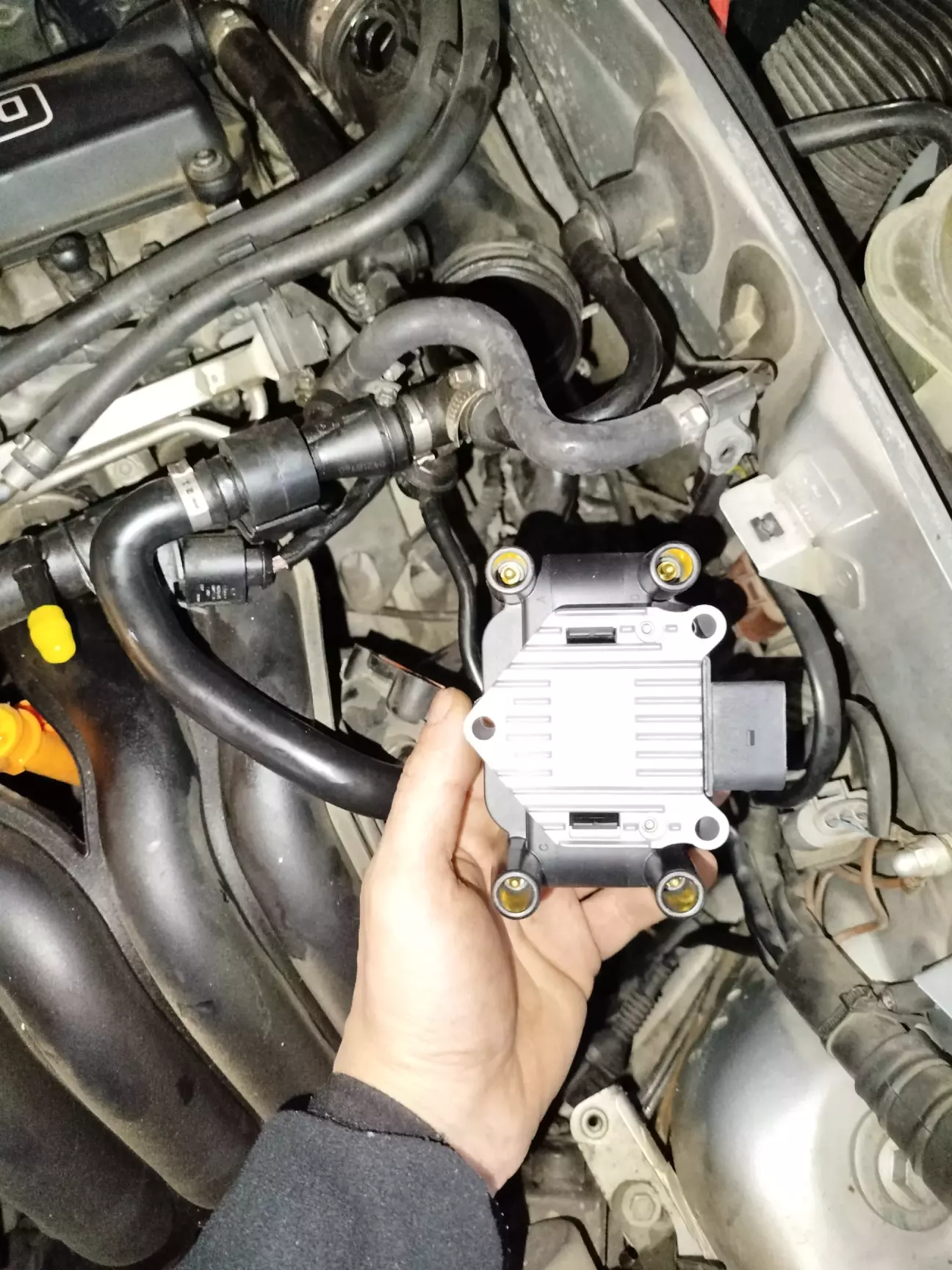 Новий модуль стає на своє місце. Свічки нові вже вкручені. Далі протяжна свічних проводів.