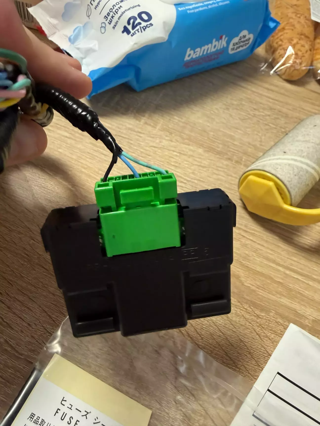 Вся крос-проводка нам взагалі не потрібна, відрізаємо зелену фішку + залишаємо запобіжник - далі ВАЖЛИВА ІНФОРМАЦІЯ, крос-роз'єм можна зробити і ГОЛОВНЕ в ньому зберегти перетин проводів, якщо простіше їх товщину... Для цього на алі був знайдений готовий крос (на хороших мідних товстих проводах, на оригінальних фішках сумітомо, які складно притягнути, у цього продавця також є все окремо! І головне товщина і якість проводів, краще проводи будуть товщі, ніж тонші, щоб нічого там не грілося)