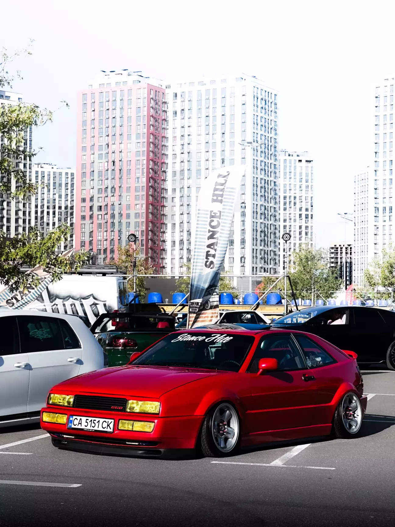 Доречі, при в'їзді на локацію корра виглядала дуже епічно... Ще по Києву я помітив, що температура охолоджуючої рідини була вище норми... Та то понятно, ці столичні затори... Далі наче стало ОК. Я то думав, що все по плану і вентилятори зроблять свою роботу... Але при в'їзді було критично жарко і з під капоту пішов пар. Навіть деякі фотографи (HONDOVODKA) встигли це зловити на камеру. Я зупинився, напряму перемкнув на фішці і вентилятори закрутилися... Дивно, але датчик включення вентиляторів охолоджуючої рідини приказав довго жити. Зробив перемичку і додому доїдемо (Хоча вона не понадобилася, додому ми їхали пізно вечером). Долив я значить антифризу (завжди літрушка з собою).