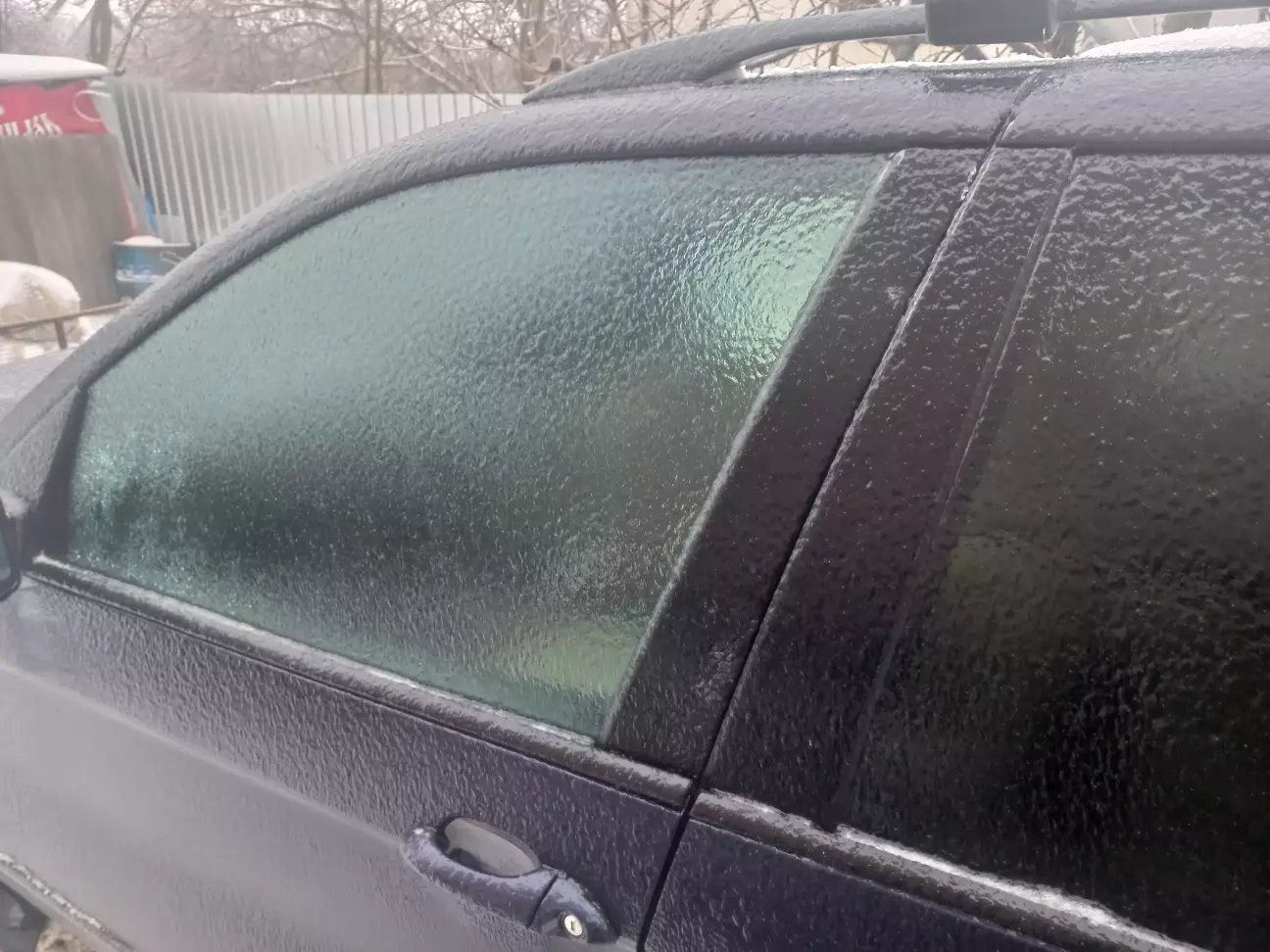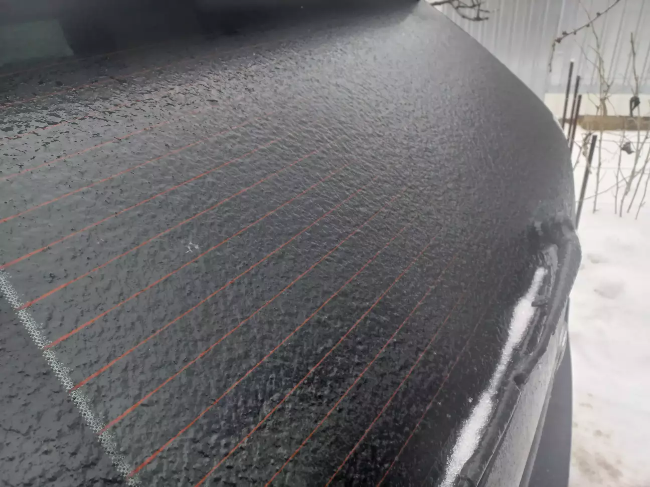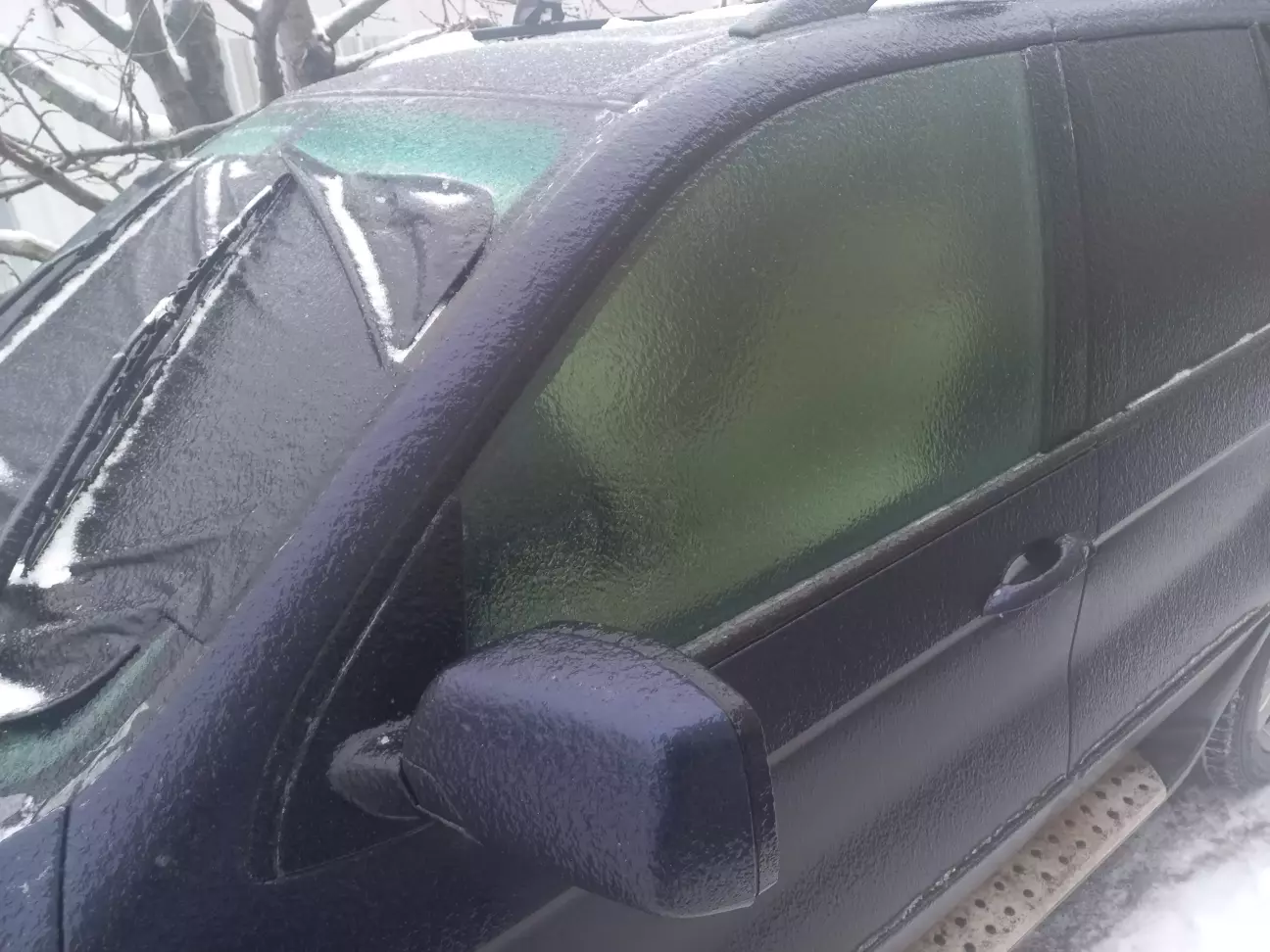 На щастя, цього разу наступного дня трохи потепліло, чи то почала працювати картонка перед радіатором )), але салон добре прогрівся, і воно само все відтало, порівняно швидко, і айсберг з даху з'їхав мені на лобове скло під час гальмування...