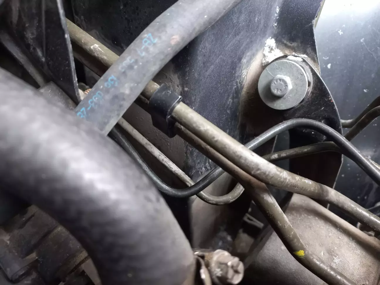 Але, як виявилось, то чергова помилка в ЕТК. Там і не повинно було її бути. Адже, вона фізично не підходить для тонких передніх гальмівних трубок. Це кліпса для двох основних товстих трубок, що йдуть від головного циліндру до блоку ABS. Ну, раз вона вже в мене є, то притулив її на ті дві трубки, хоча ніякого толку там від неї і нема.
