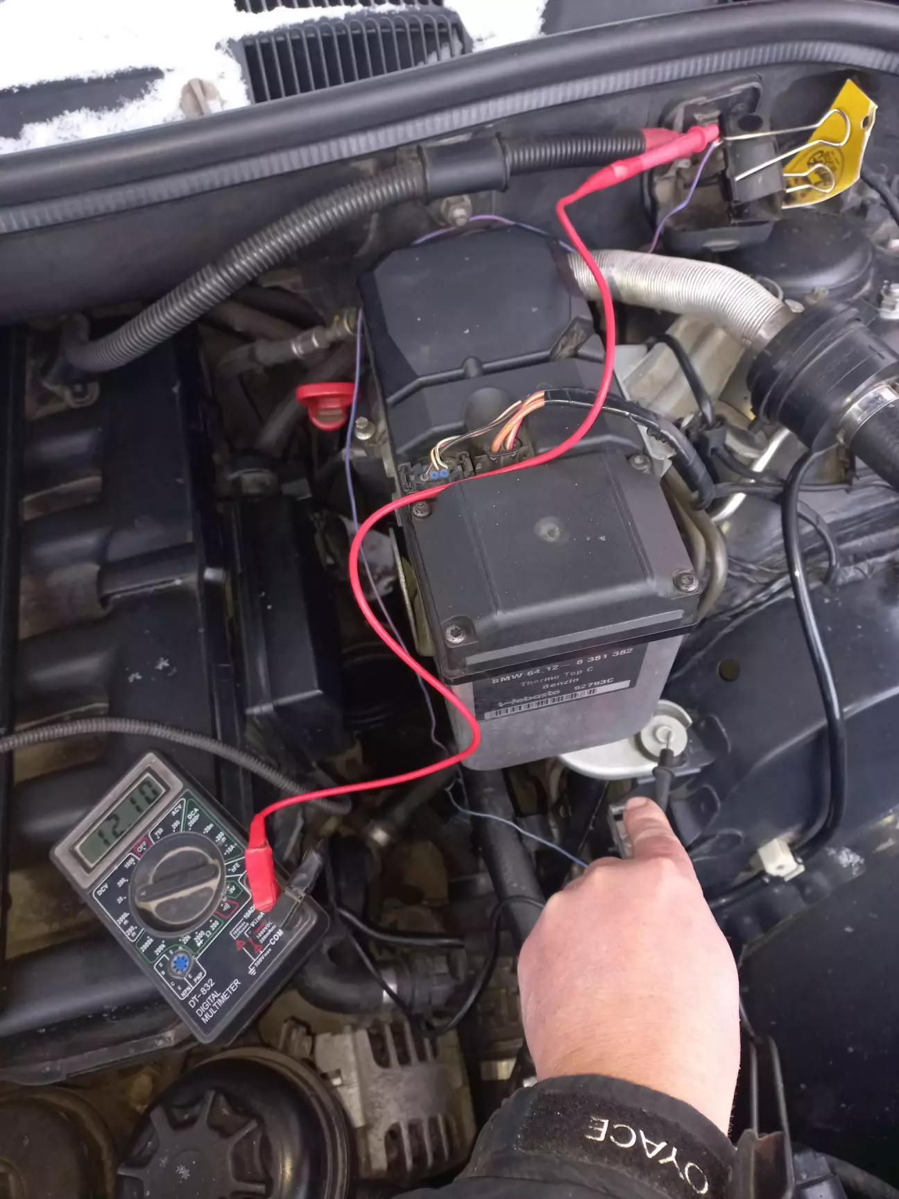 Вмикаємо запалення, клімат на максимальну температуру. При цьому помпа повинна почати працювати. Але на фішці всього 2,7 вольта...