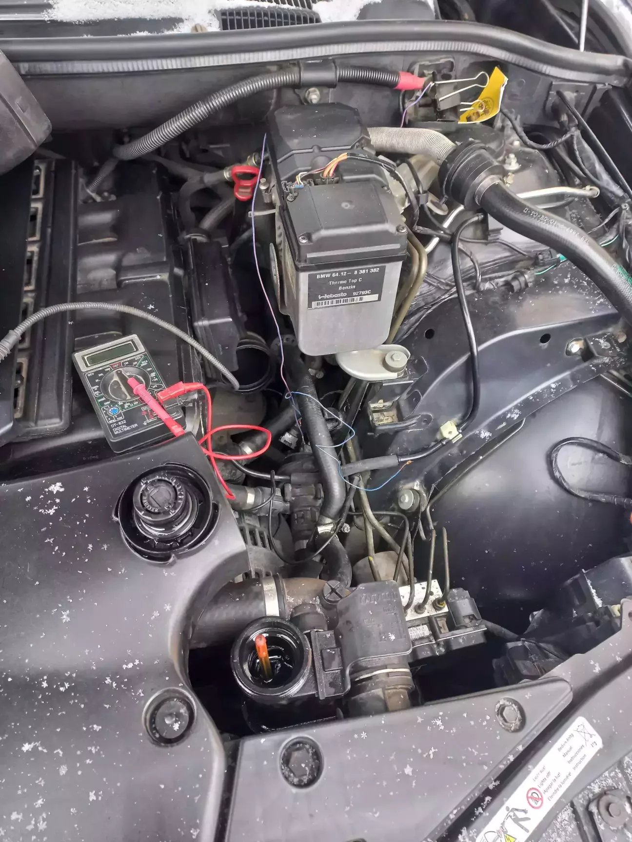 Звісно, що вона не вмикається. В інтеренетах вичитав, що це може бути через помилку по помпі, що висить в пам'яті ЕБУ клімата. Скидається вона шляхом виймання запобіжника №48, що йде на клімат. Але мені це не допомогло. На цьому місці в мене вже так замерзли пальці на руках, що ковиряти щось глибше, а тим більше лізти до термостата, в мене вже не було ніякого бажання!... Тому підключив помпу і залишив до тепліших часів...