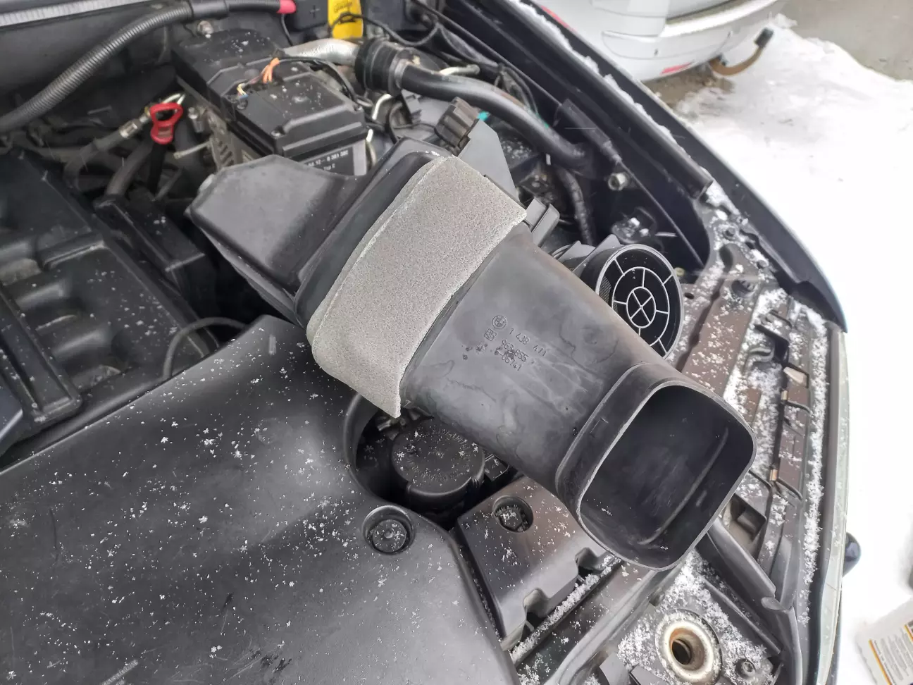 Друга деталь - нова гофра до корпусу повітряного фільтра. Тут теж не все пішло гладко... Як видно на фото, стара гофра протерлася об розширювальний бачок радіатора. Чи може просто пластик потріскався від його температури...
