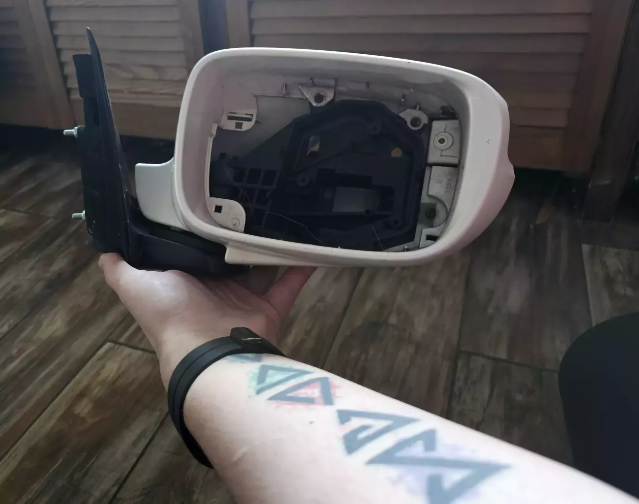 Невеличка передісторія для чого це все потрібно. В минулих дописах я писав про встановлення пам'яті керма та сидінь від Акури РЛ (Хонди Легенди). Так от, ця система окрім пам'яті керма та сидіння має також пам'ять дзеркал заднього вигляду. Для відстежування поточного положення дзеркал використовується доволі хитра система зі зміною опору в різних положеннях дзеркала, і якби я не старався це повторити на штатних дзеркалах результат виходив або не дуже робочим, або не дуже надійним. Тому було вирішено купити дзеркало від Легенди та спробувати інтегрувати механізм у зборі.