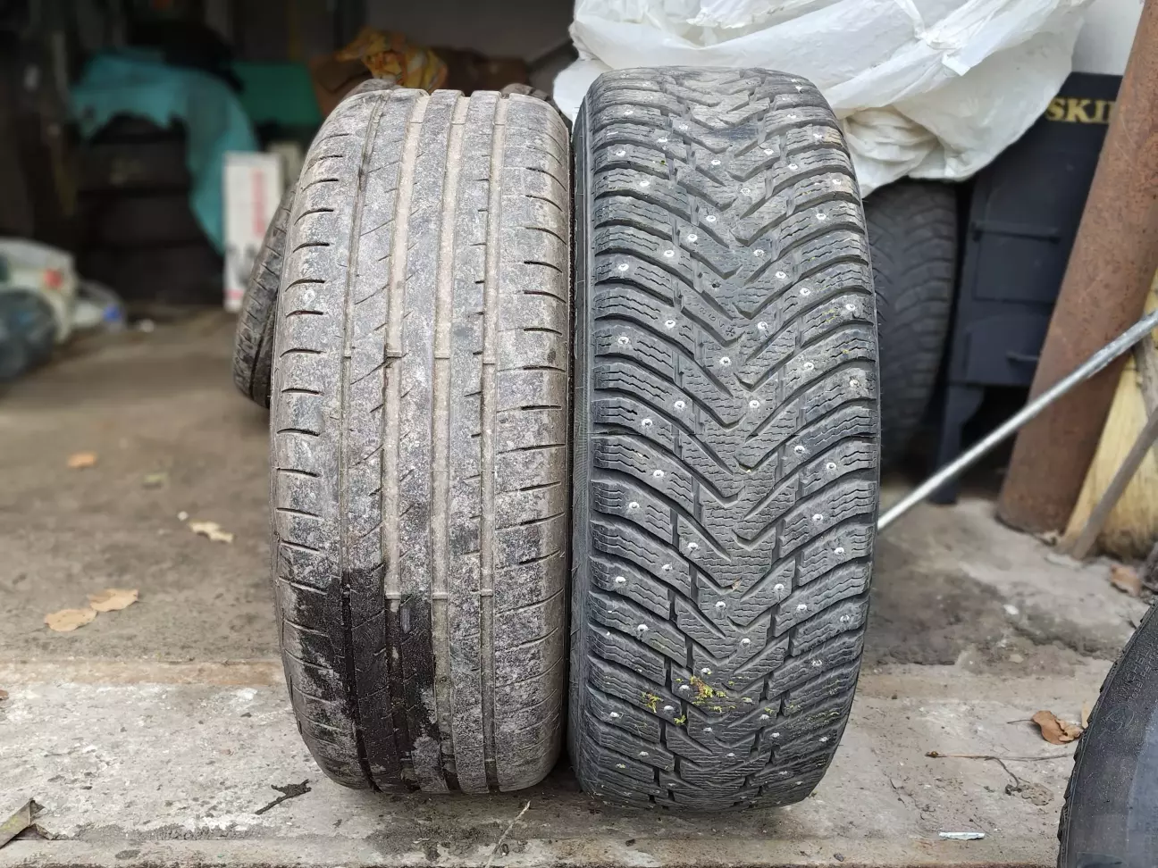 Для порівняння поряд літня гума 215/55 R17 та зимова гума 215/60 R17.
