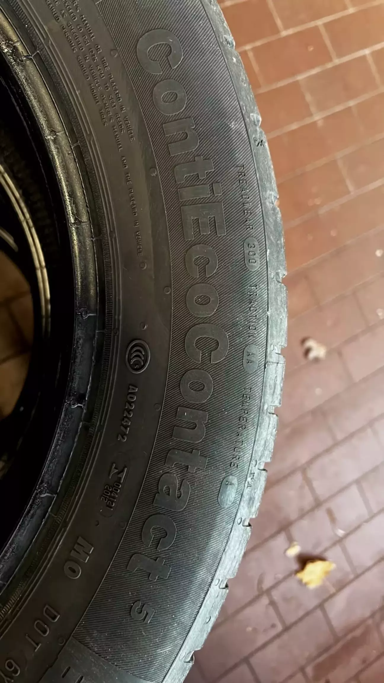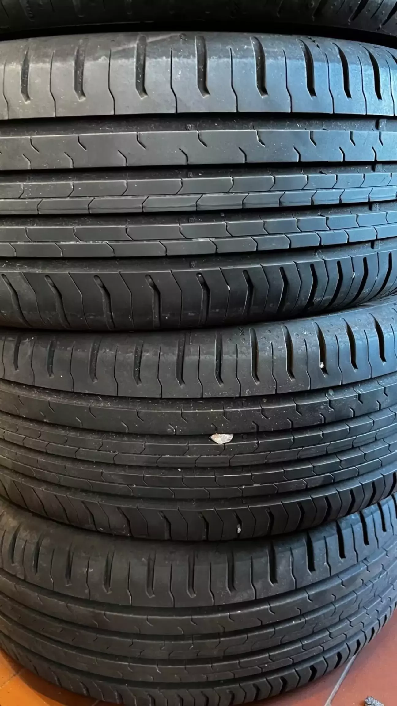 Так як моїй літній гумі вже 10 років, з'явилися мікротріщини і висота протектора вже підходить до граничної 3 мм (висота протектора в бічних канавках 3 мм, а в центральній 6 мм, я так розумію через експлуатацію на зниженому тиску), то я вирішив купити комплект свіжої літньої гуми. Знайшов комплект ContiEcoContact5 205/55 R16, майже нову з протектором 7 мм за 110 євро. Гума 2023 року. Вчора забрав.