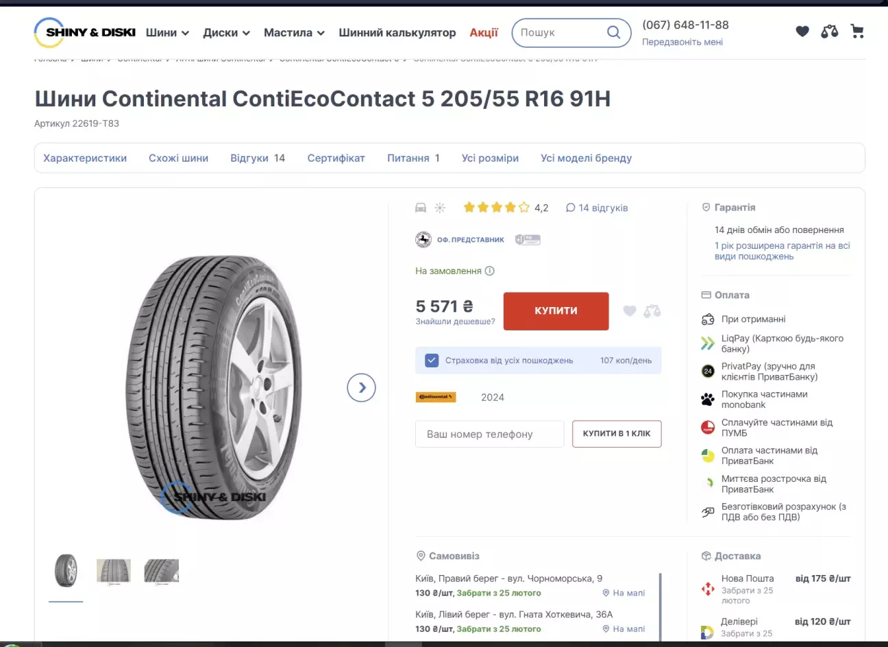 Цікавий факт - нова гума тут у Німеччині набагато дешевша ніж в Україні. Для порівняння ContiEcoContact5 205/55 R16 у Німеччині коштує 73,85 євро за колесо, тобто 295,28 євро комплект 4 коліс (15 059 грн), а в Україні 109,2 євро за колесо, тобто 436,8 євро комплект 4 коліс (22 280 грн). Тобто в Німеччині дешевше, ніж в Україні, на 141,5 євро (7221 грн). Доставка у Німеччині 4 колеса додому безкоштовна, а в Україні доставка Новою поштою від 175х4 = 700 грн., а може дорожче.