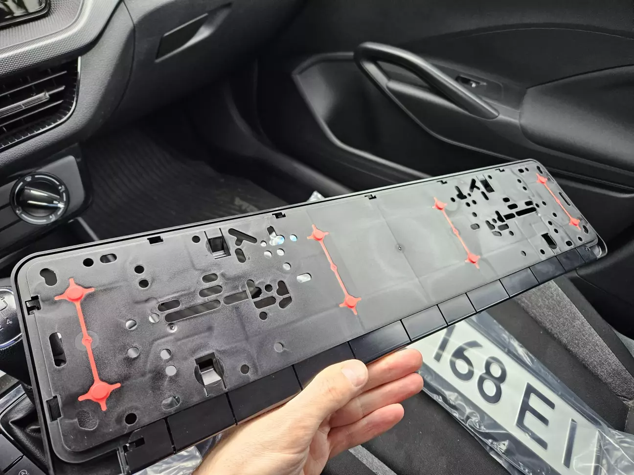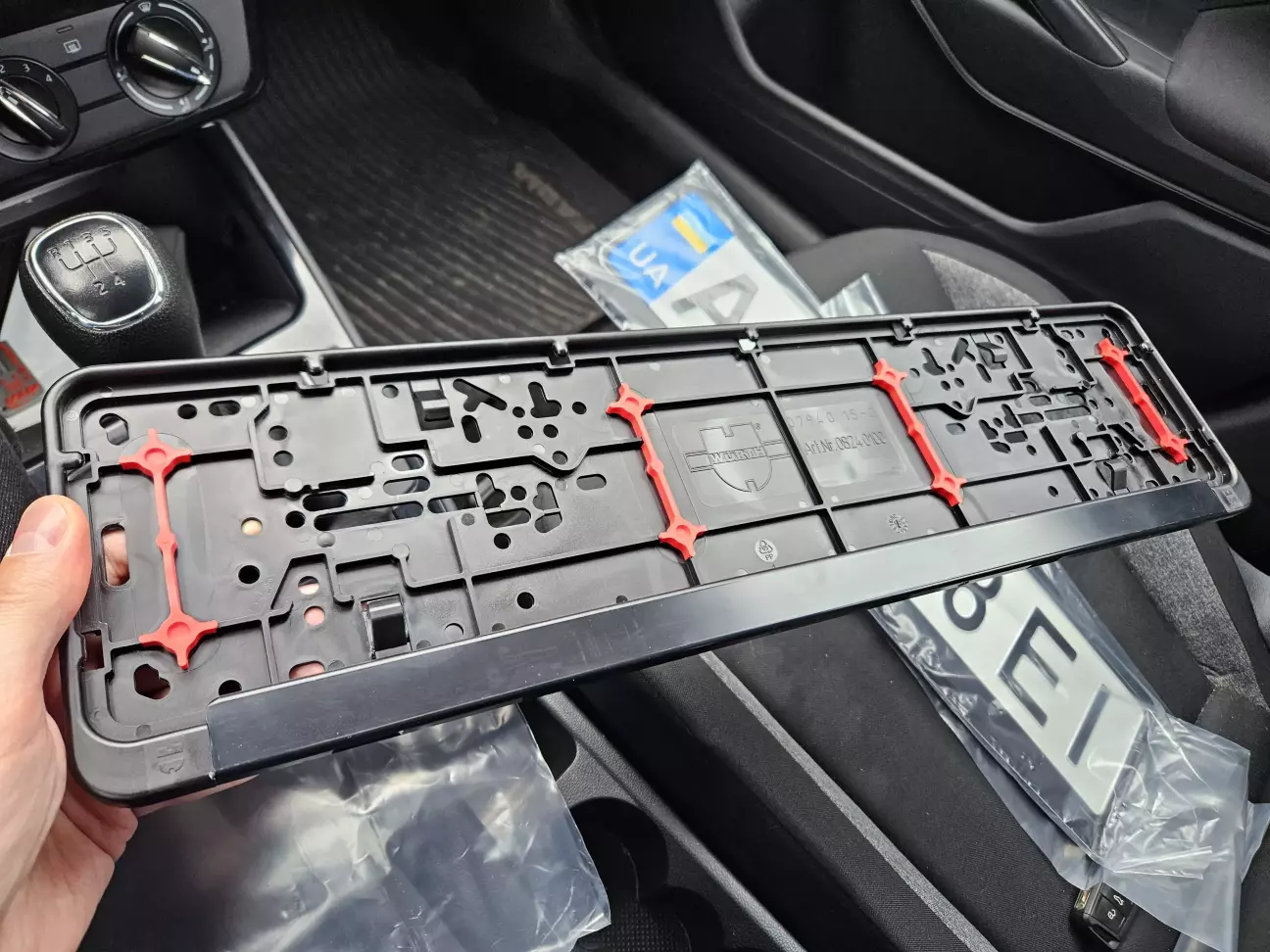 Доброго дня. Придбав нові рамки для номерних знаків. Гарної якості, з амортизуючими вставками (на фото вони червоного кольору, резинові) по ~320грн/шт.