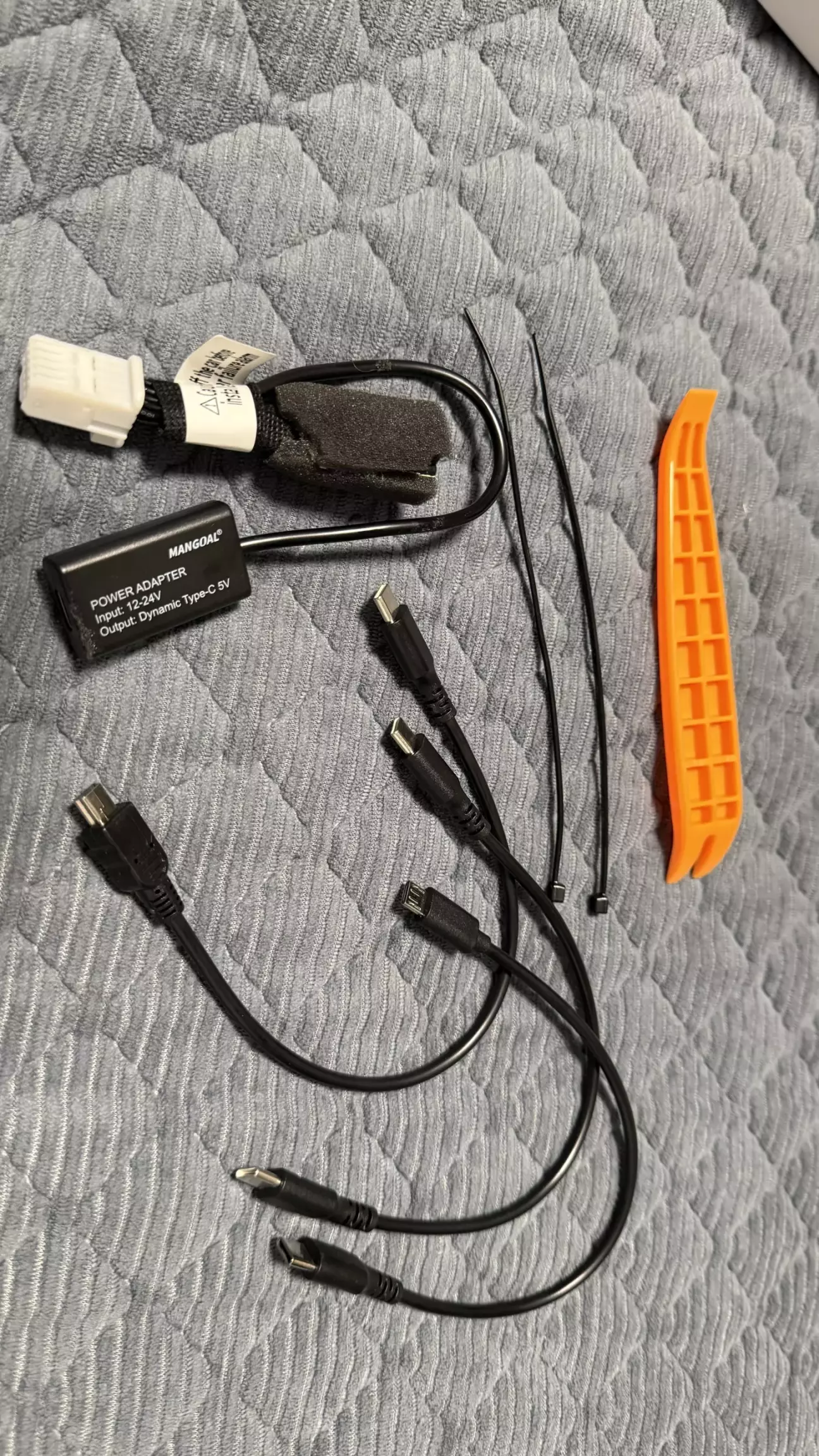 здивувала комплектація - лопатка для монтажу, дві стяжки та три дроти type c - type c, type c - micro usb, type с - ще старе щось)))