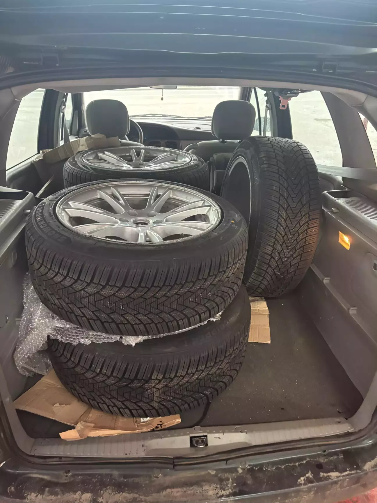 Шини мають агресивний зимовий протектор з великою кількістю ламелей, що добре працює на снігу, каші та холодному асфальті. Посилений борт (XL) — важливий плюс для важкого електромобіля.