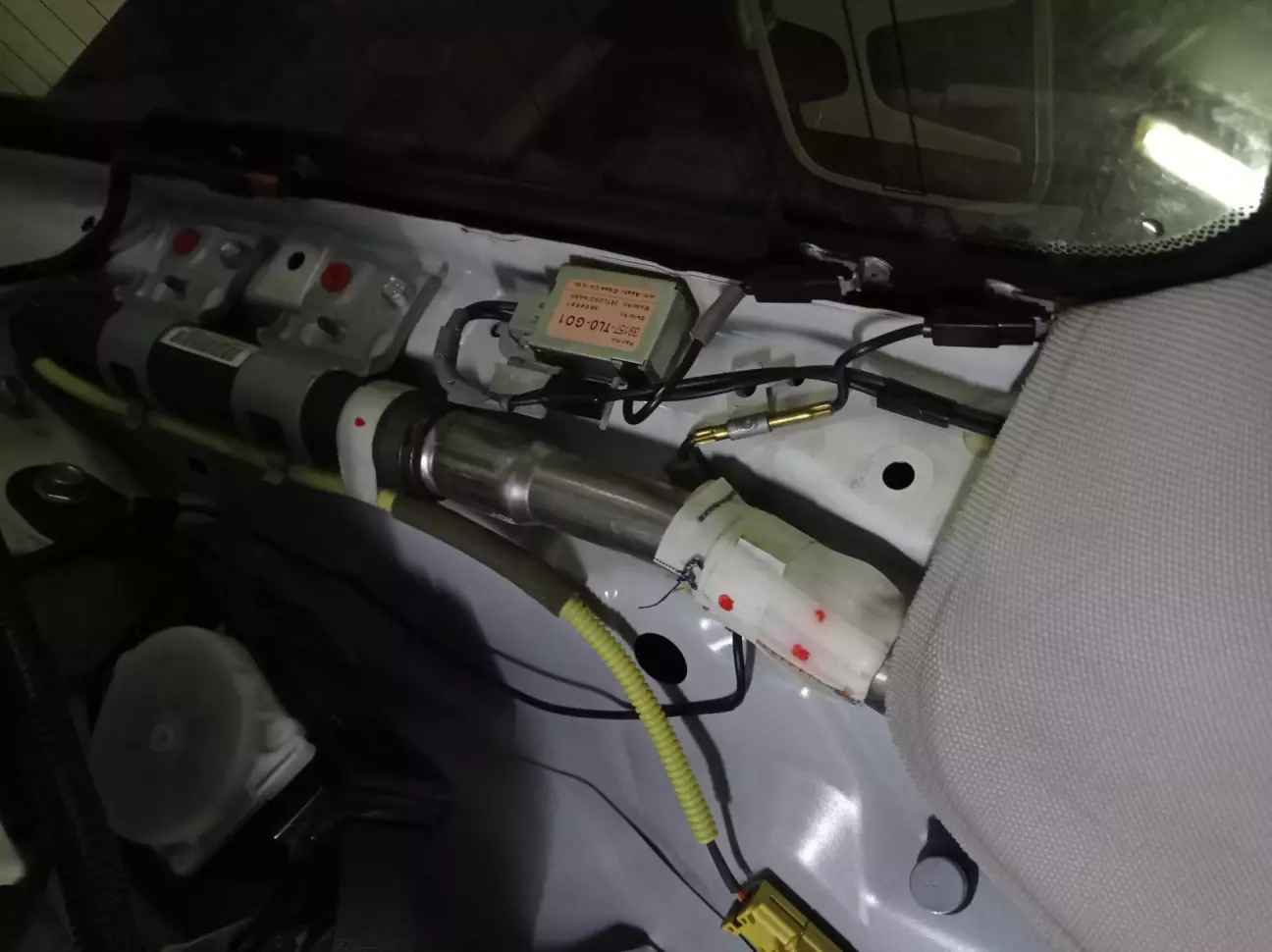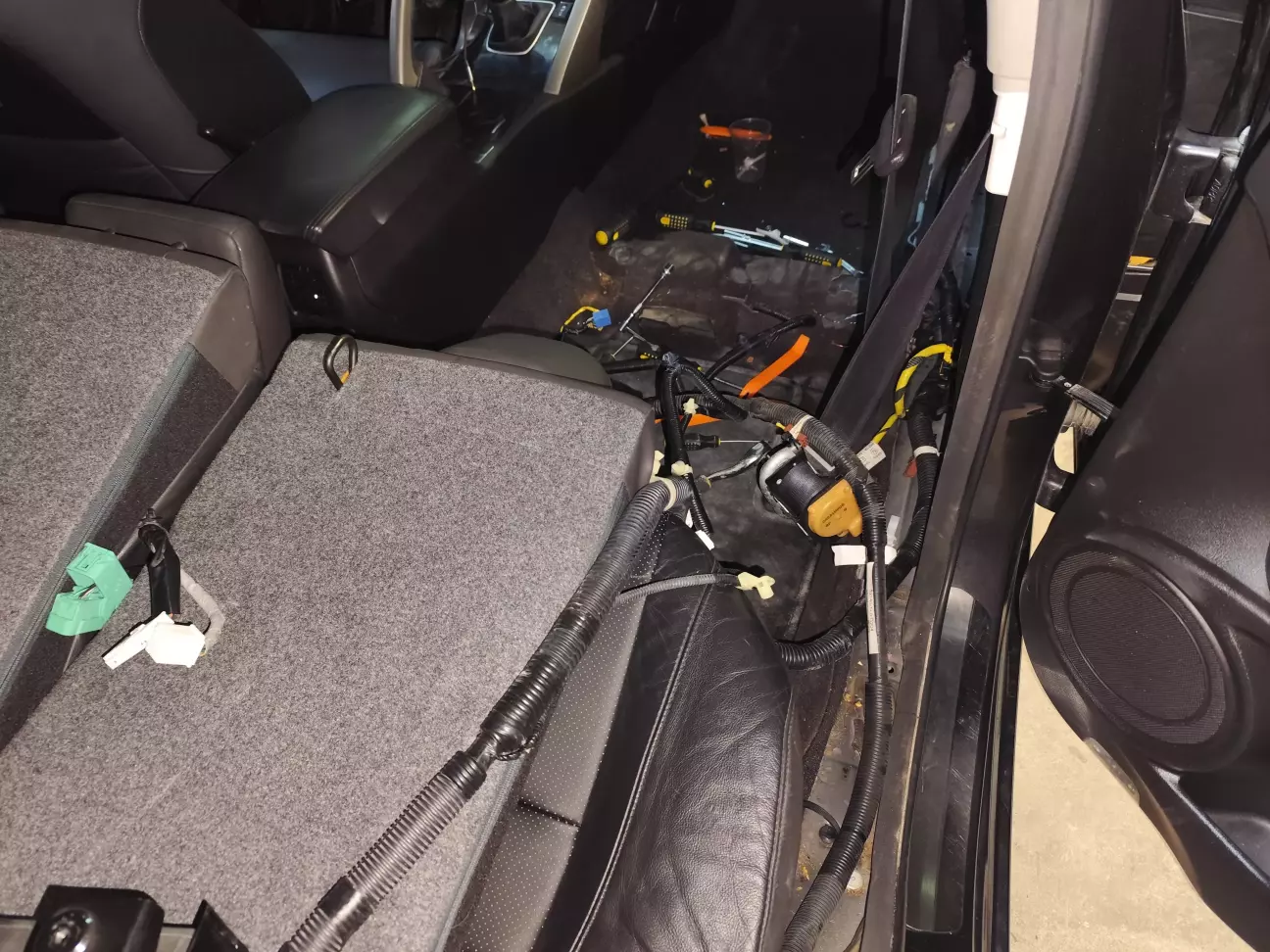 Далі міняємо проводку правого порогу, також потрібно зняти сидіння пасажира,так як під сидінням прикручені провода на масу, які йдуть від коси проводки і фішка airbag