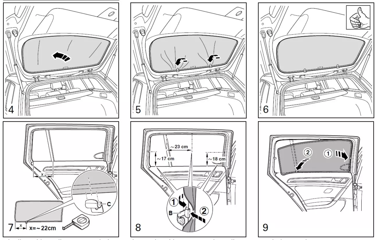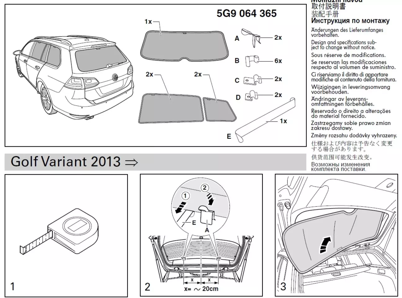Як я вже натякав у минулому дописі, під час останнього відрядження я придбав подарунок для Гольфа. Ним стали каркасні шторки на скло задньої напівсфери. Затонувати шибки теоретично можна, але це треба робити через серйозні контори, що видають сертифікат відповідності, а таких фірм в мене поруч немає. Якби в природі існували карти дверні як у А4 чи Б8, де шторка в них ховається, то був би стимул їх шукати, бо зрощувати коня з собакою я не збирався. А так, оцінивши під час літньої подорожі до Італії, як дітям не вистачає чогось такого, вирішив зосередитися на оригінальному аксесуарі для лінійки Г7. @3IPD_STALKER як раз поставив собі такого плану шторки на Е39, тому отримавши його схвальний відгук, почав відстежувати аналогічне рішення для Гольфа на вторинному ринку. Ціна нового комплекту з ОЕМ номером 5G9064365 починається від 175 євро. Такий точно набір, проте замість Volkswagen на ньому буде логотип виробника Sonnyboy - від 140 євро. Я ж традиційно просто ліниво спостерігав за вторинним ринком, щоб зрозуміти ситуацію. Такий комплект цілком реально придбати за 50 євро в відмінному стані і з усіма гачками. Навіть були варіанти недалеко від мене, але тоді я все ще сумнівався в доцільності покупки... Отак я додавав товар у закладки, він зникав з часом, а я далі спостерігав за ринком. Так, знаючи, що я буду їхати на Берлін, зберіг до закладок варіант з Магдебурга, який я згодом таки й придбав за 45 євро. До нього входять 2 шторки для задніх дверей, 2 шторки для бокових віконечок багажника та 1 велика шторка на ляду (та відповідні гачки-тримачі):