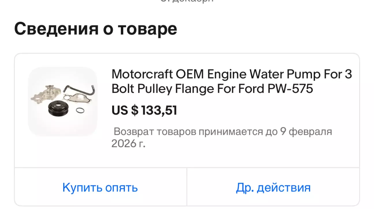 Купив помпу в США на EBay , бо там адекватні ціни і зрозуміле походження запчастин.