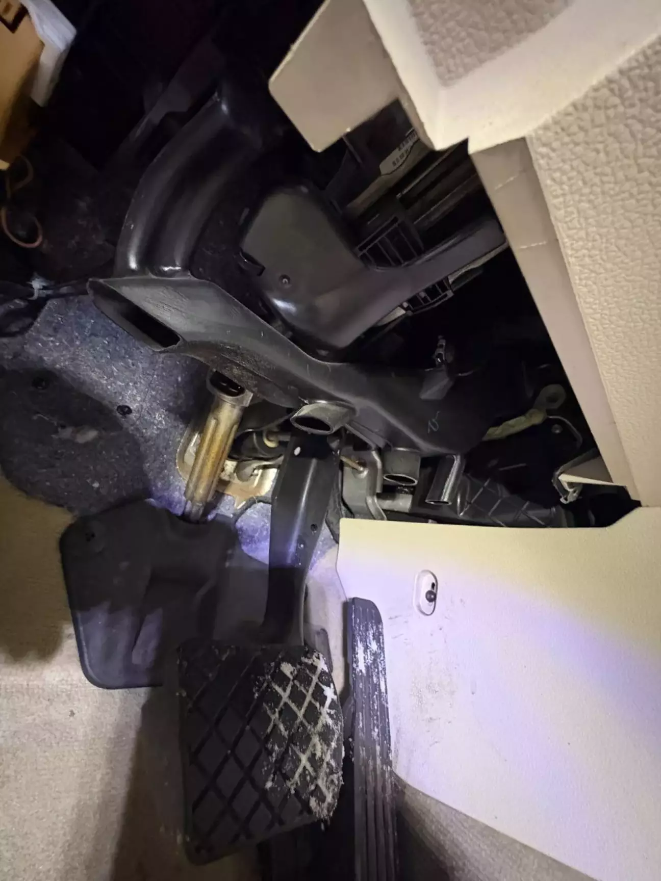 Доступ до радіатора зі сторони ніг водія. Знімаємо бардачок зі сторони водія.
