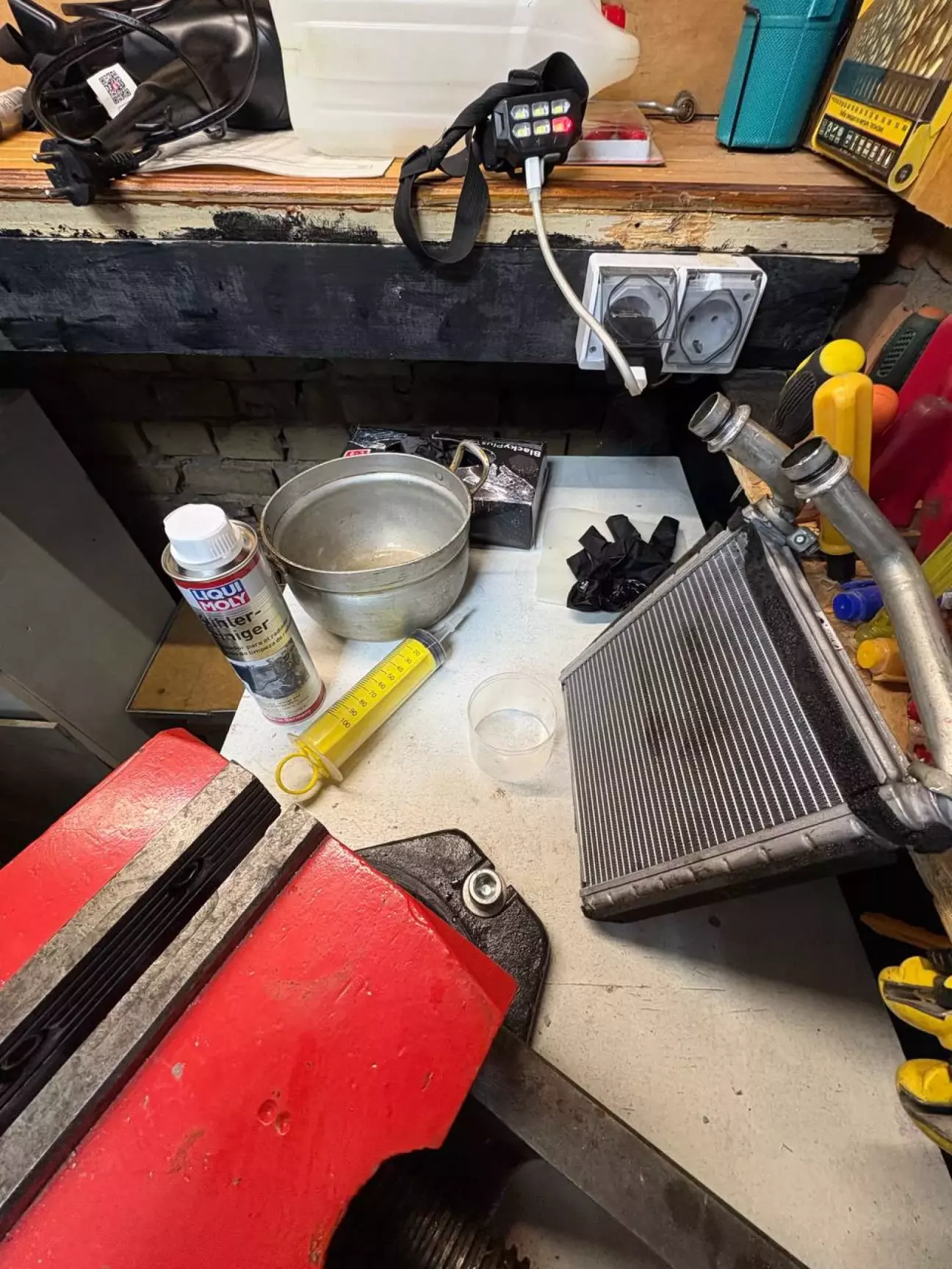 Отже, радіатор дістали, готуємо розчин для промивки, згідно інструкції на упаковці. В радіатор поміщається +- 200 мл розчину(залежить від ступеню забрудненості)