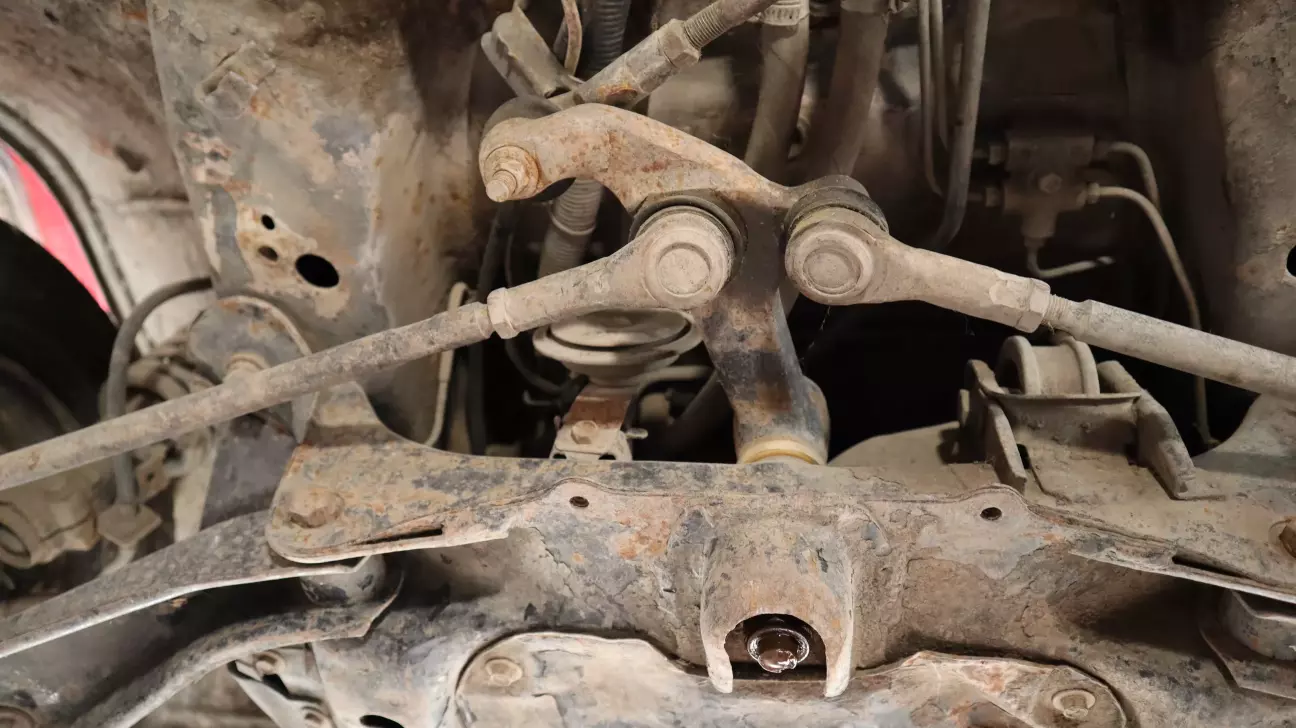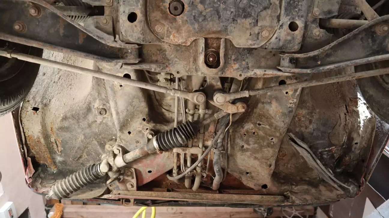 По передней, левой части шасси: