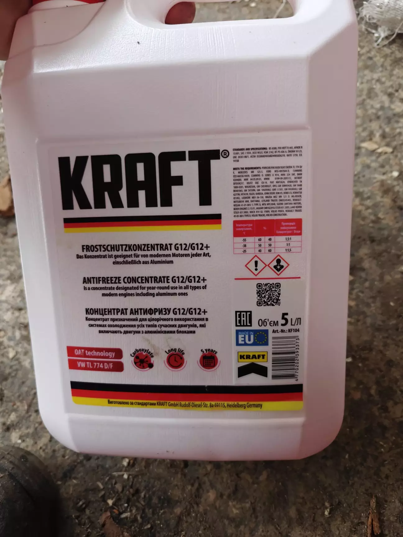 - Потім до зими вирішив замінити антифриз, купив г11 зелений Хепу, який і був. Але через два дні після заміни помпа дала задню. Помпа буда не оригінал, я її міняв багато років тому. Оригінал зняв, вона була ціла, короче там проблема була не в помпі тоді. Поставив назад оригінальну помпу , замінив ролики і ремінь, їм був вже час для заміни. Антифриз залив г12 Крафт. Чому Крафт і г12? Просто була акція в Епіцентрі на нього в той момент , ну і почитав про г11 і г12 і в моменті зрозумів, що 12 реально краще, у Крафта г12 є допуск Кіа/Хюндай, тому довго не думав і замовив👇