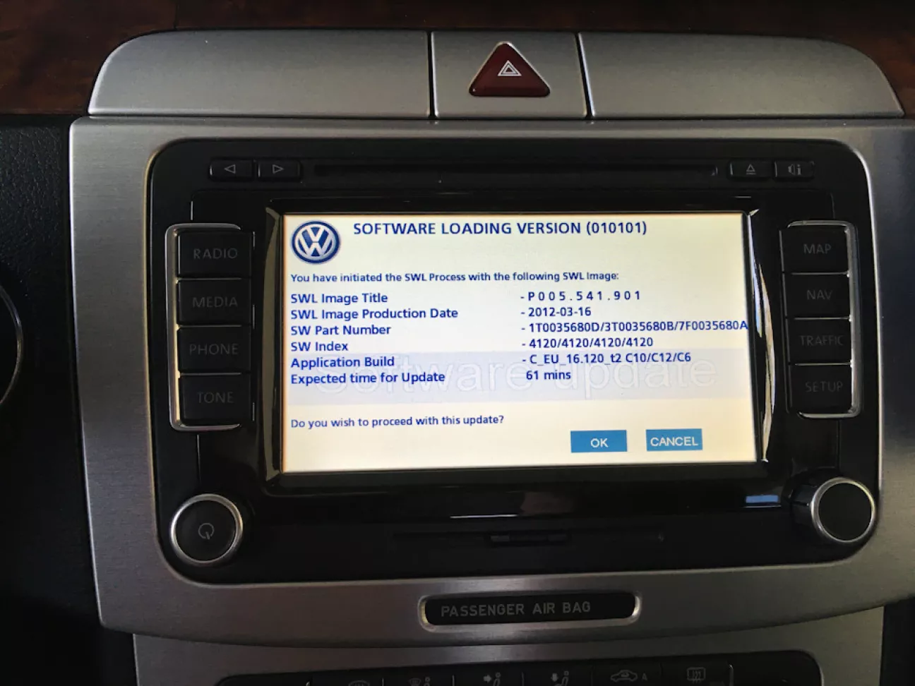 Оновлення триває орієнтовно 50 хв ,якщо акумулятор слабенький то підключаємо зарядку . Ключ запалення не встановлюємо .