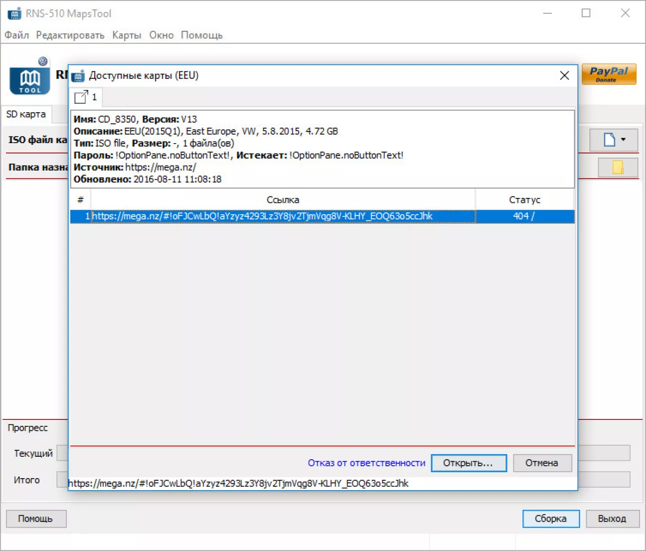 Вставляємо карту пам'яті SD та в програмі MapsTool вибираємо шлях до файлу карт ISO та та шлях до карти SD на яку буде списано частину прошивки, далі натискаємо кнопка ЗБІРКА (очікуємо закінчення процесу).