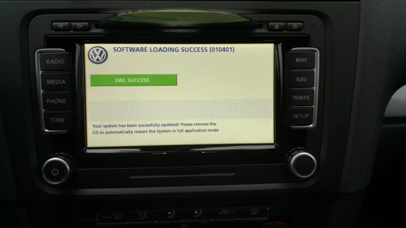 Диск із програмним забезпеченням повинен вийти автоматично і RNS-510 виконає перезавантаження.