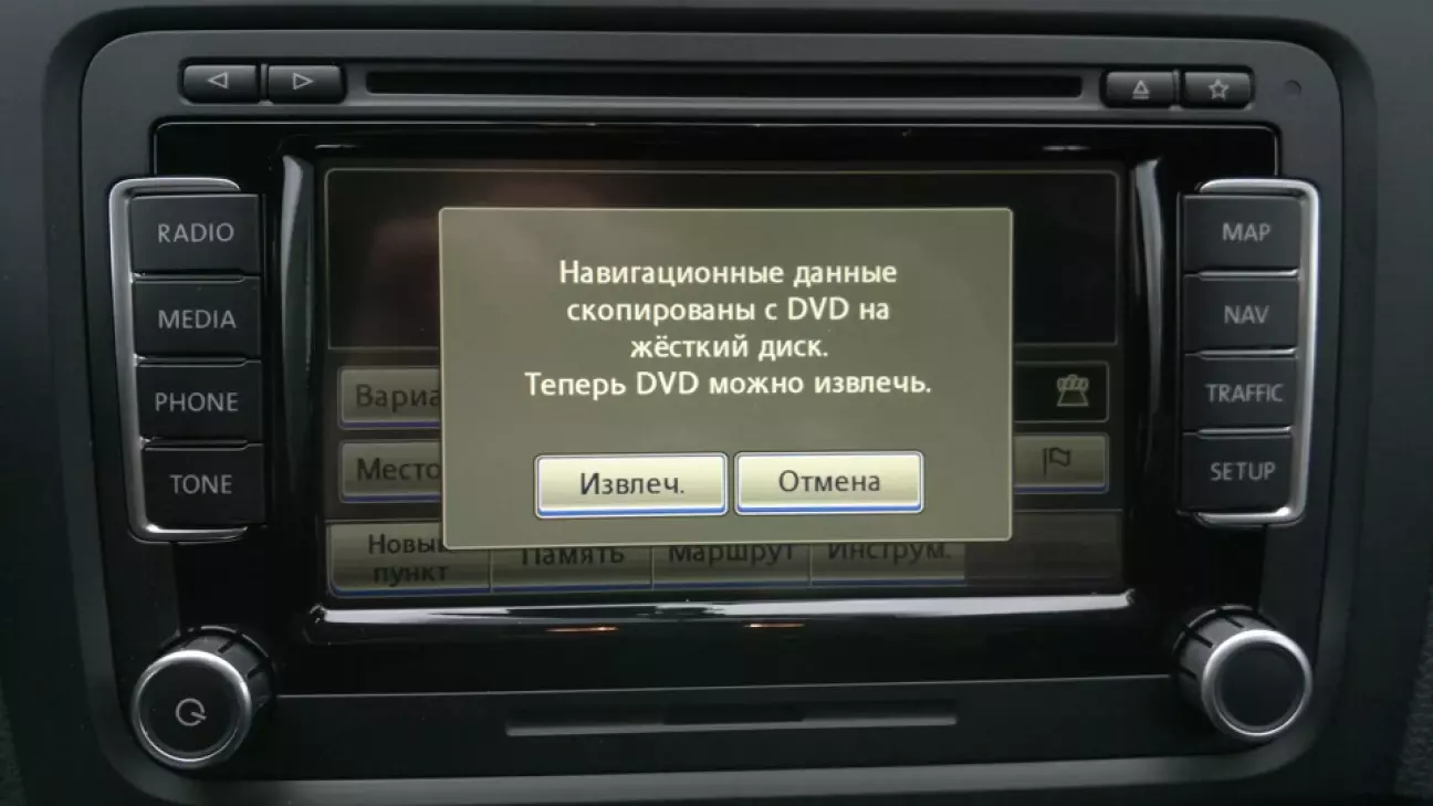 3. Переходим в навигацію, вставляем CD или DVD диск и перезагружаем RNS кнопочками SETUP+Eject+INFO/Mic.