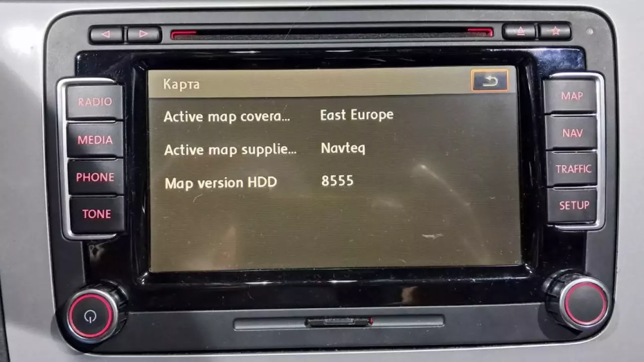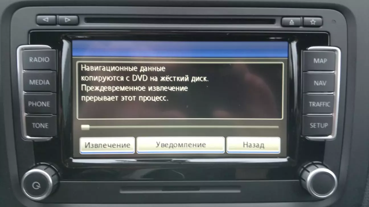 Переходимо в навигацію, вставляємо CD або DVD диск і перезагружаємо RNS кнопоами SETUP+Eject+INFO/Mic.