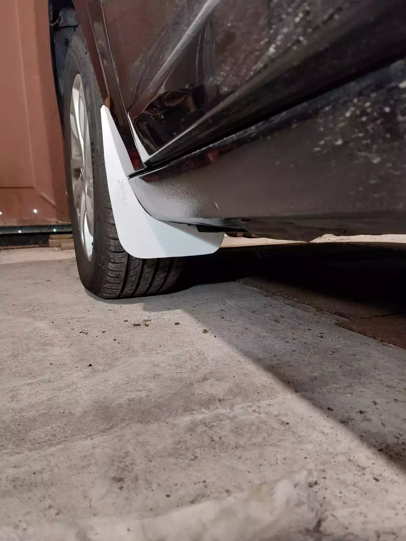 При плановій заміні масла в двигуні помітив на кутах порогів біля передніх арок невеликі сколи фарби ( добре що в меганах оцинковка класна - іржі не було) але бачив в цих ваших інтернетах - якщо забити - то через якийсь час все одно поіржавіє , підфарбував, і вирішив що потрібні бризковики, замовив якісь модельні (написано було шо Південна Корея, насправді думаю китай китайський)