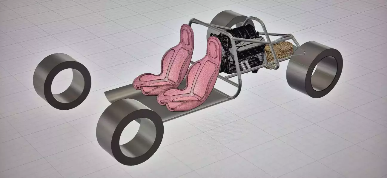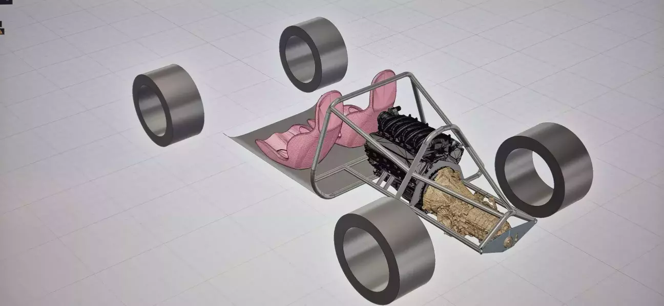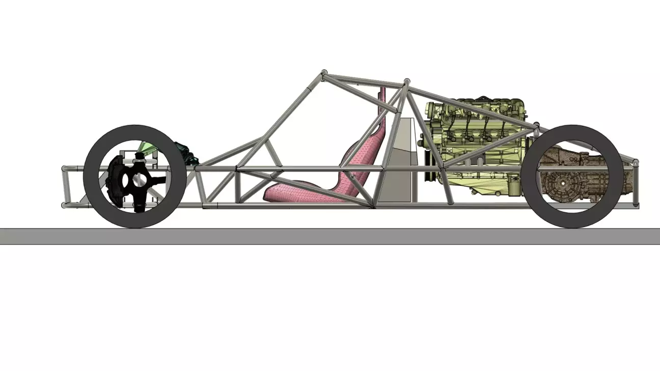 Почав заново. Звісно, не відразу ідеально жорстку — спершу треба розмістити головні елементи: двигун, коробку, колісну базу, сидіння. Від цього й відштовхуватися.