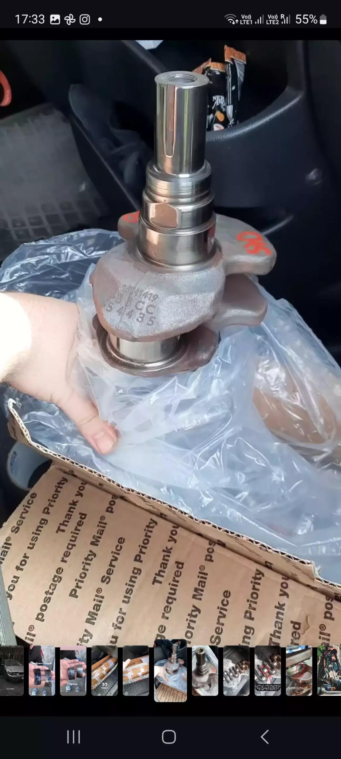 Було вирішено шукати колінвал, довго я його шукав, по просторах Олх і різних розборок. Не знайшов потрібного, знайшов аж в США за 300$ але з доставкою вийшло десь 380$ а знайшов я його на ebay, замовляв через якусь компанію яка займається викупом і доставкою товарів з США і інших країн. Чекав десь місяць, 2 фото розпаковка.