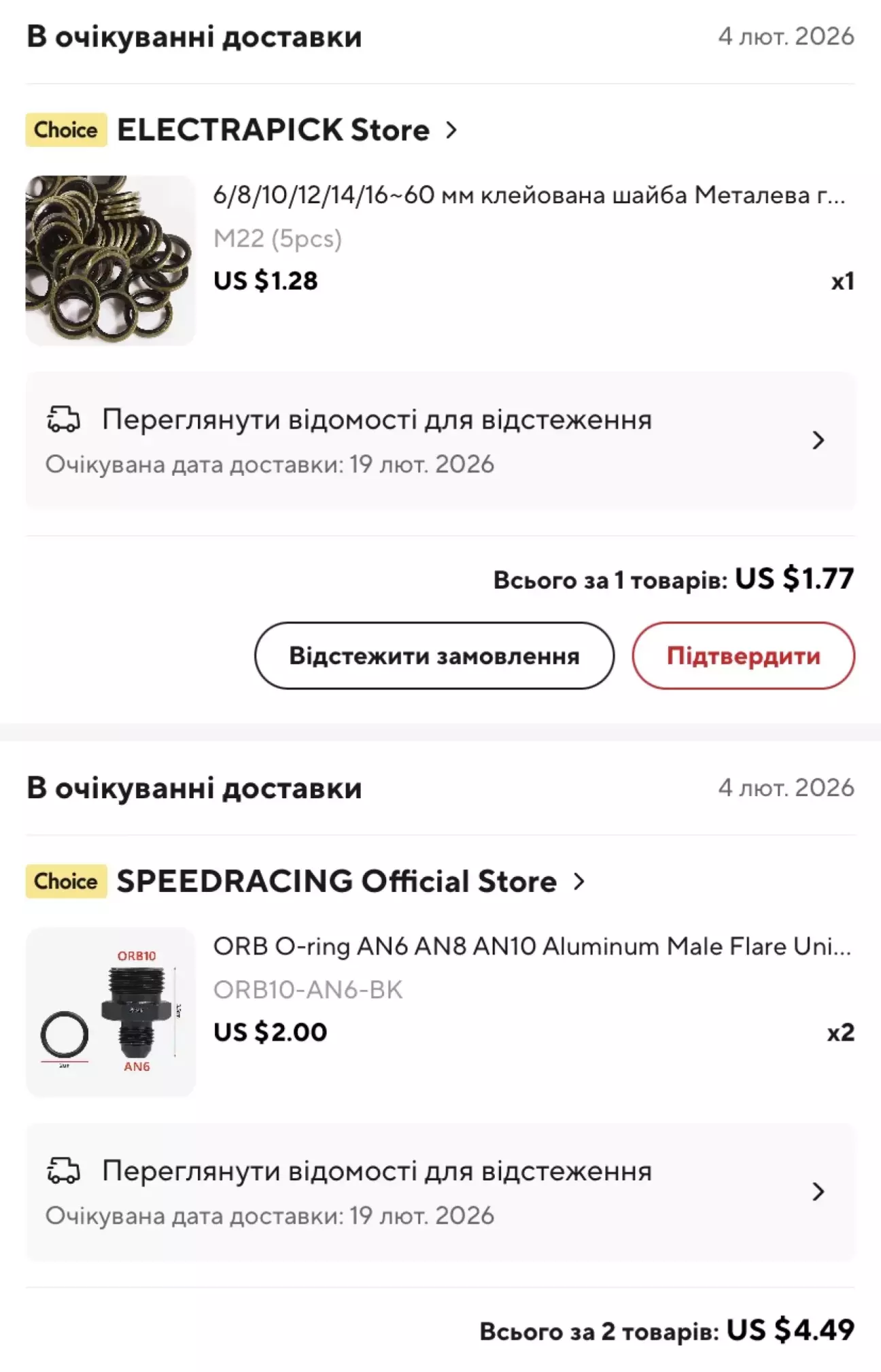 Ну і про комбіновані ущільнення вони звичайно набрехали, тому замовив нормальні штуцери і dowty seal (комбіновані) ущільнення