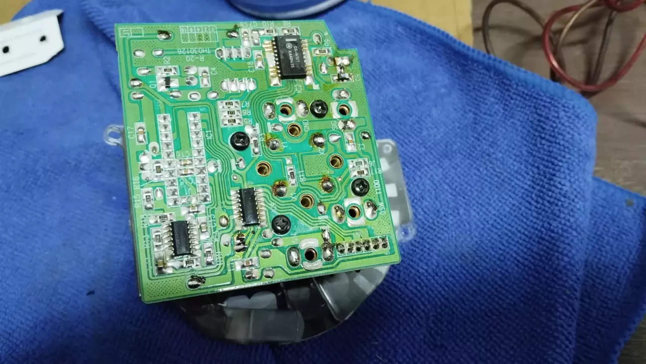Бачу що його вже паяли. Передивився доріжки на предмет проблем. Нічого не знайшов. Підозрілі місця пропаяв. Знімати моторчик не став, треба його від плати відпаювати. А запчастин в мене все одно немає.