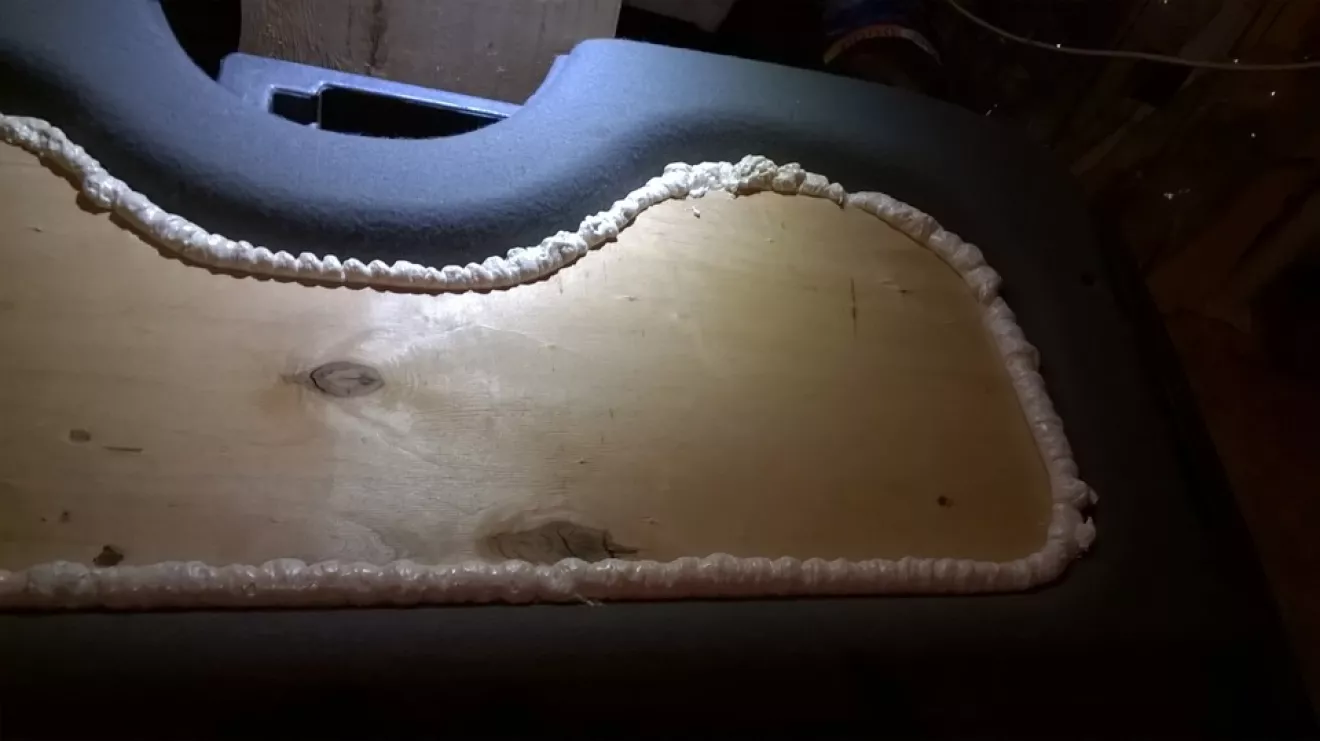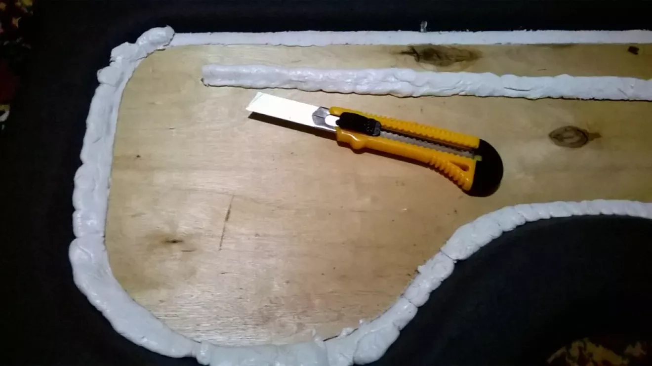 После того как пена высохла, немного ее прессовал, чтобы увеличить плотность и обрезал лишнее.