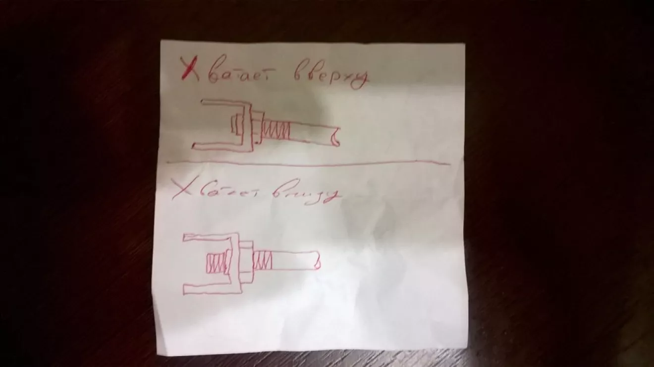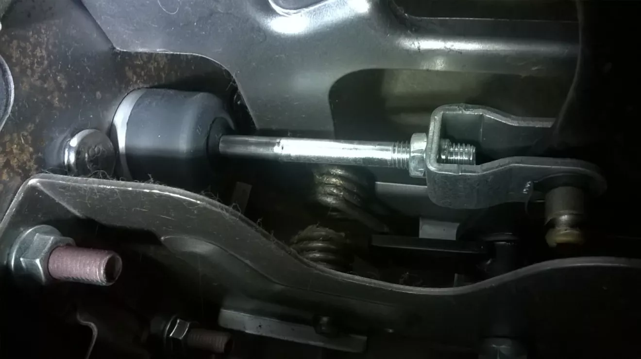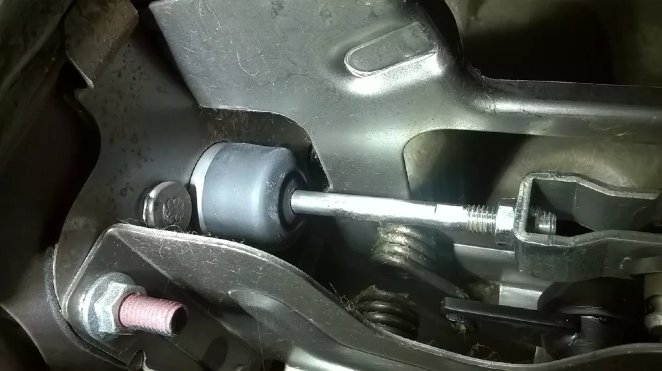 2. Ключиком на 8 или плоскими проворачиваем шток, чтобы кол-во витков резьбы на выходе стало меньше, прии этом сцепление будет брать выше.