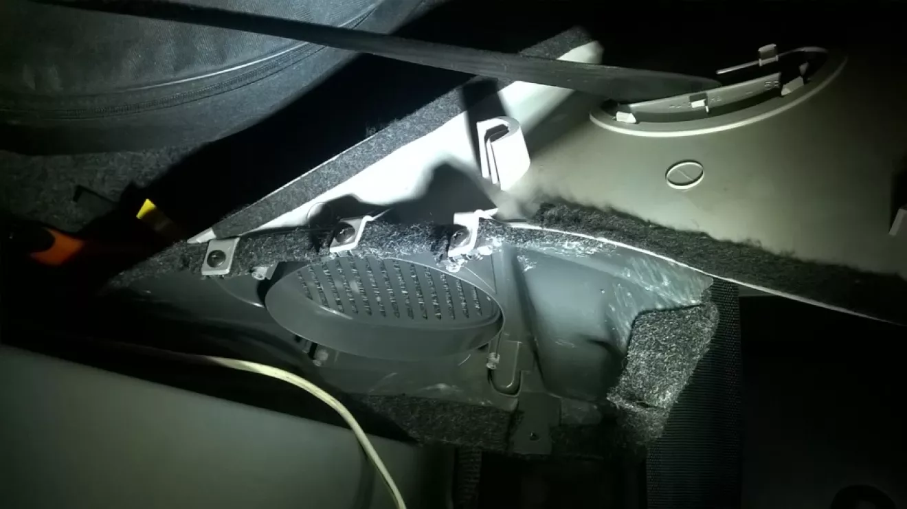 Решил заодно обклеить штатные подиумы динамиков. Заметил, что один из них очень плохо выглядит, видать выгорел на солнце, другой версии у меня нет.