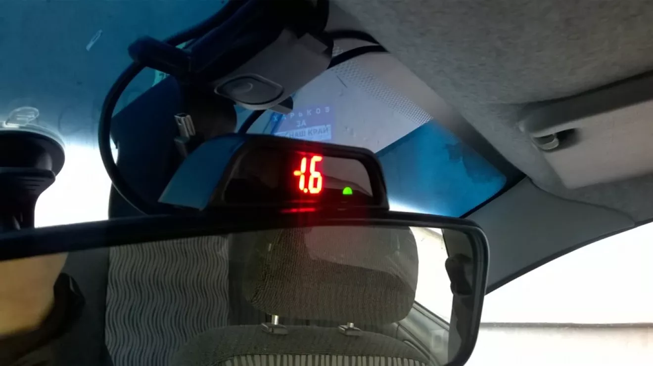 Провод к дисплею повел по порогу, стойке, потолок и сам дисплей закрепил на зеркале заднего вида.