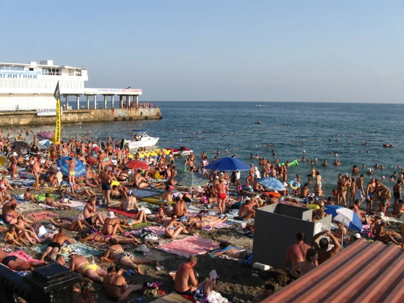 После того как лежать на пляже стало совсем не в моготу, двинули в Судак. Там была задумка объехать ближайшие достопримечательности. На море там уже смотреть не хотелось, потому как местный пляж был "немного" переполнен. Особенно по сравнению с тем где мы были до этого :)