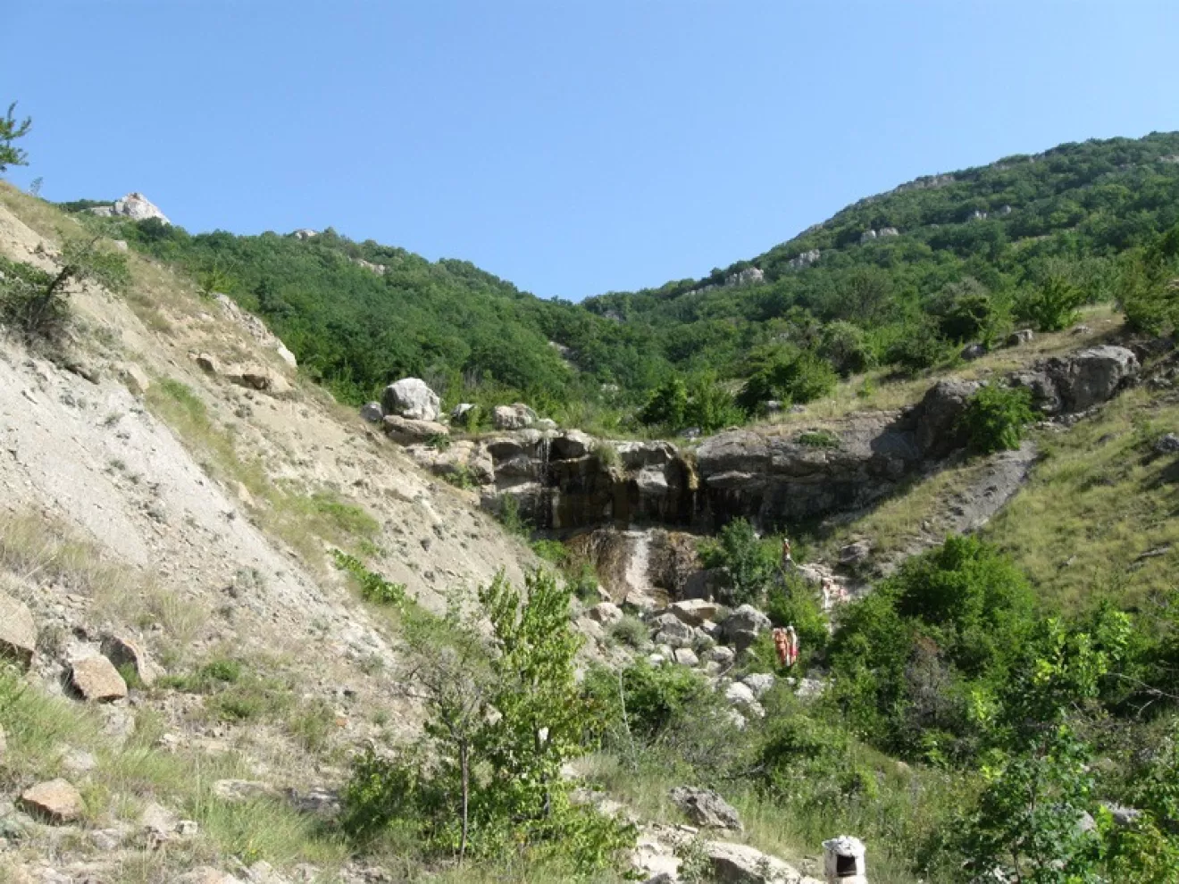 В панах было полазить и по горам Караул-Оба и Коба-Кая, но в этом году как-то особенно жарко, поэтому решили заняться этим по весне :) Ну а дальше ехать решили в Зеленогорье. Пройтись по устью горной реки и упереться в красивенный водопад Арпат.