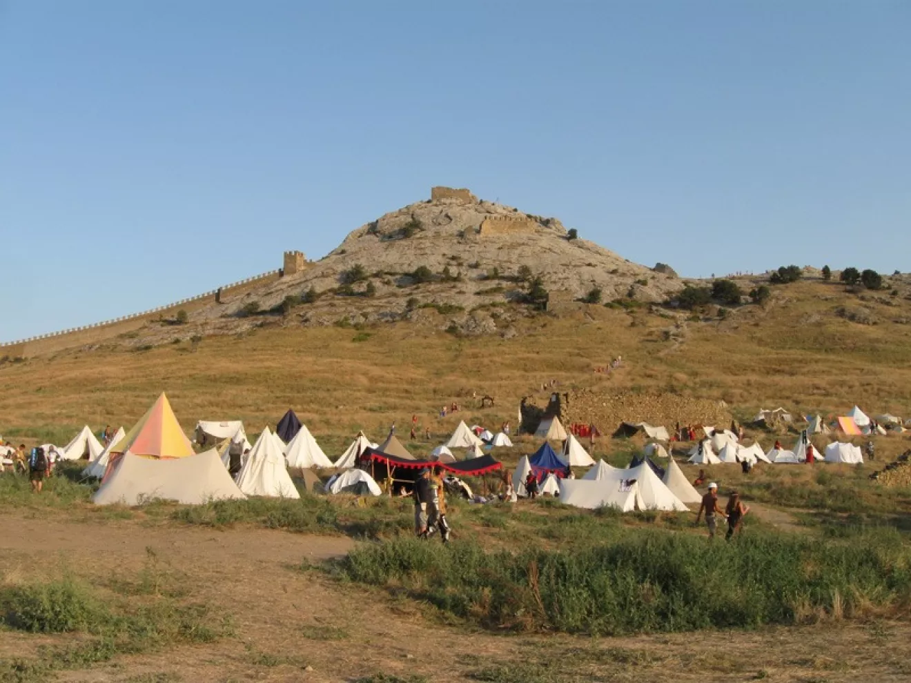 В тот момент как мы туда приехали, проходил фестиваль. На территории расположился палаточный городок в духе тех времен, на протяжении всего дня проходили театрализованные постановки, рыцарские бои, показательные выступления и т.п.